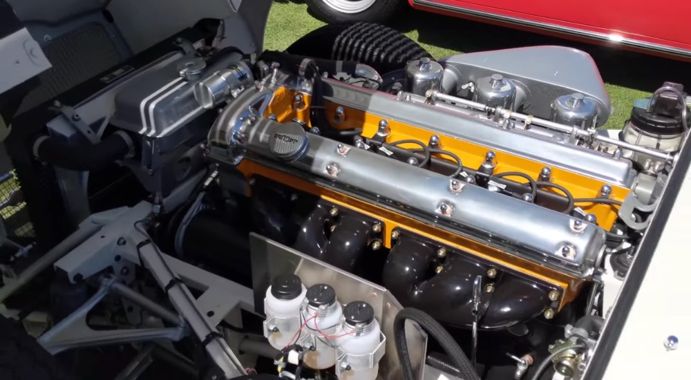 Unlike the red Jaguar before, the white 3.8-liter received a good scrubbing and polishing, with the block itself painted in pumpkin, the perfect backdrop for the chrome and black ceramic headers running all along the motor.
