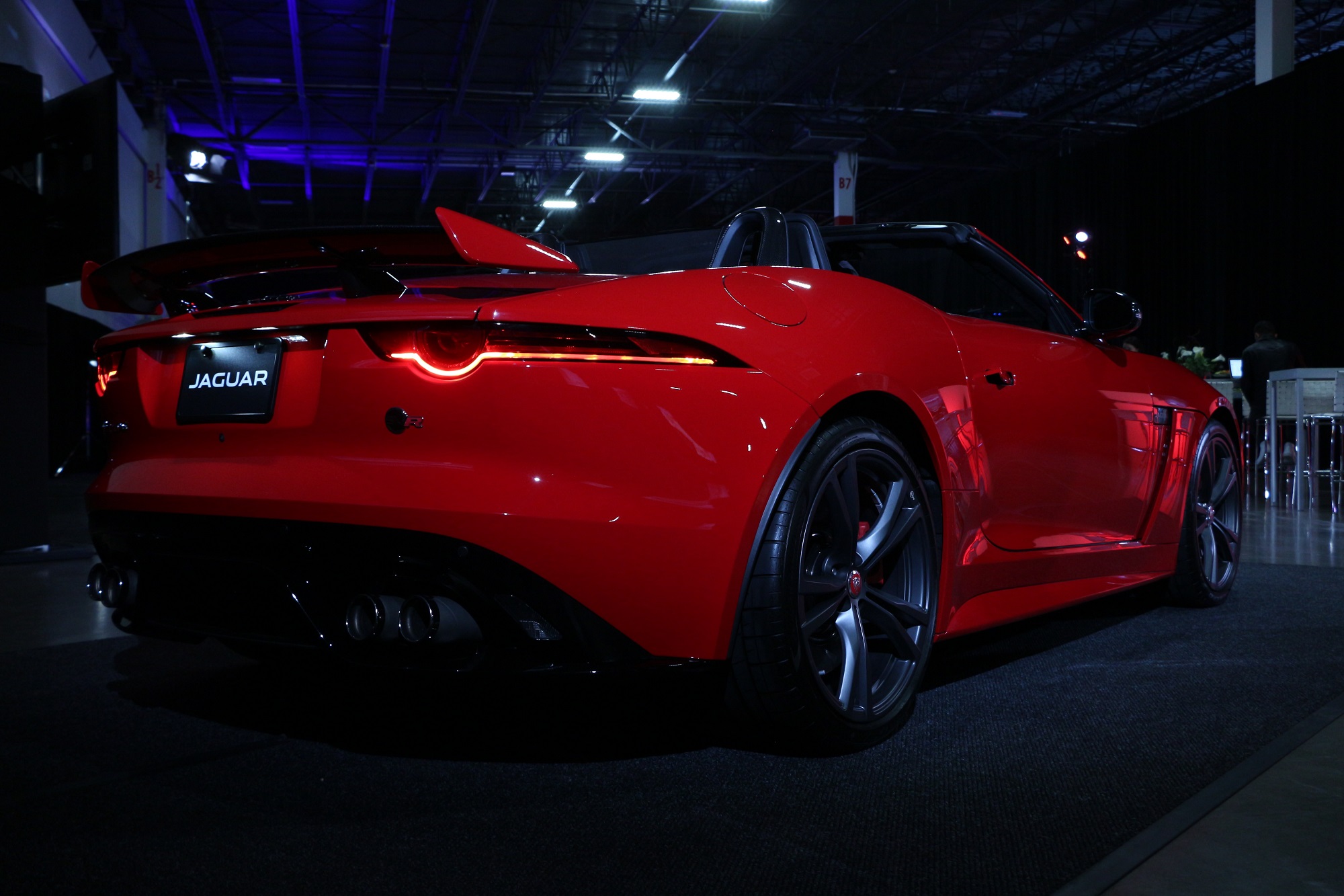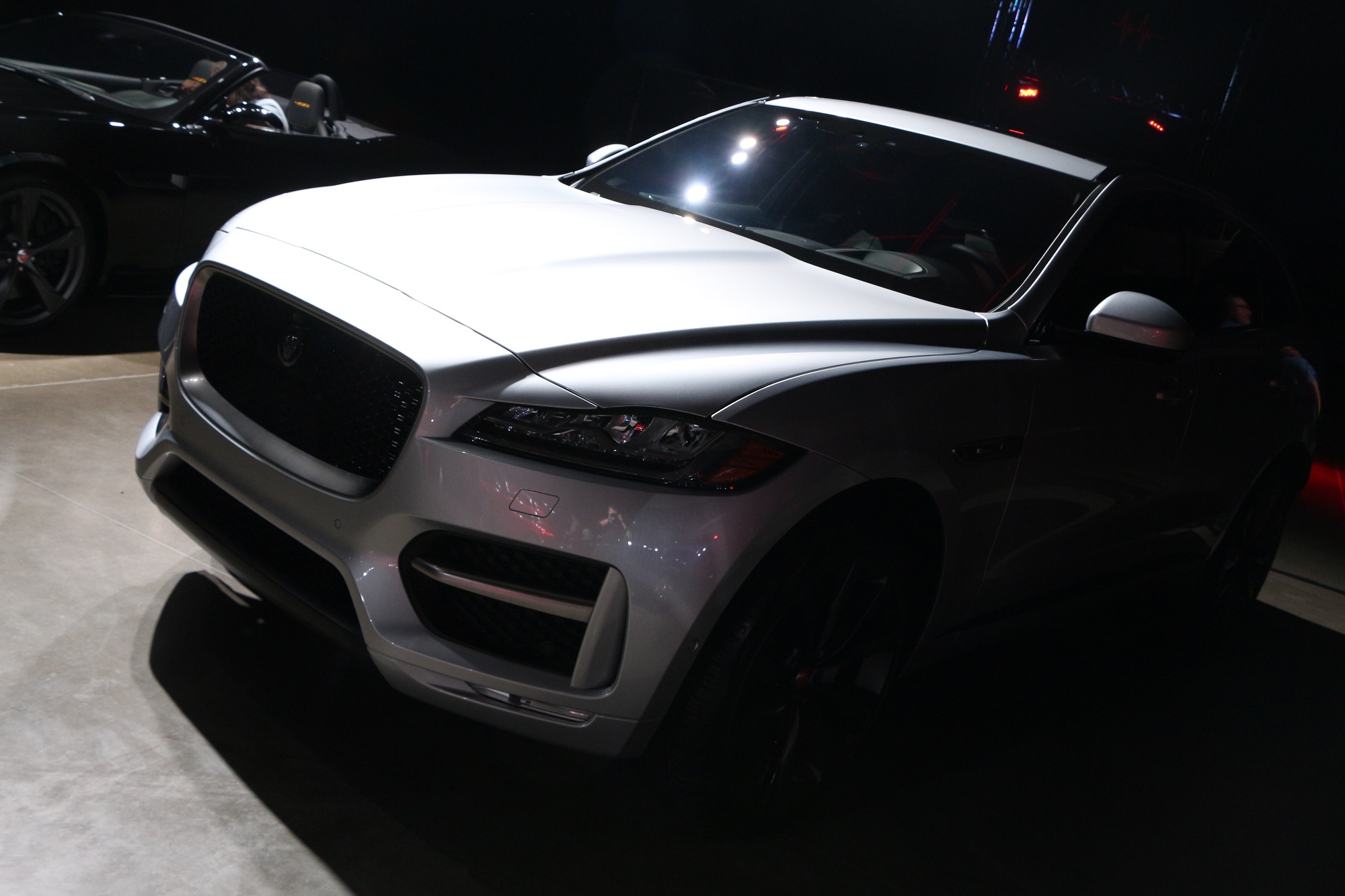 Beside the ever evocative F-TYPE sat a 2018 F-PACE SUV finished in Rhodium Silver. Leave it to Jaguar to make the color silver so desirable. This finish is stunning, even under the sultry lighting seen here. Want to see more? Here is the F-PACE when it’s not shrouded in darkness. Actually, that Caesium Blue color might be the best pick for an F-PACE.