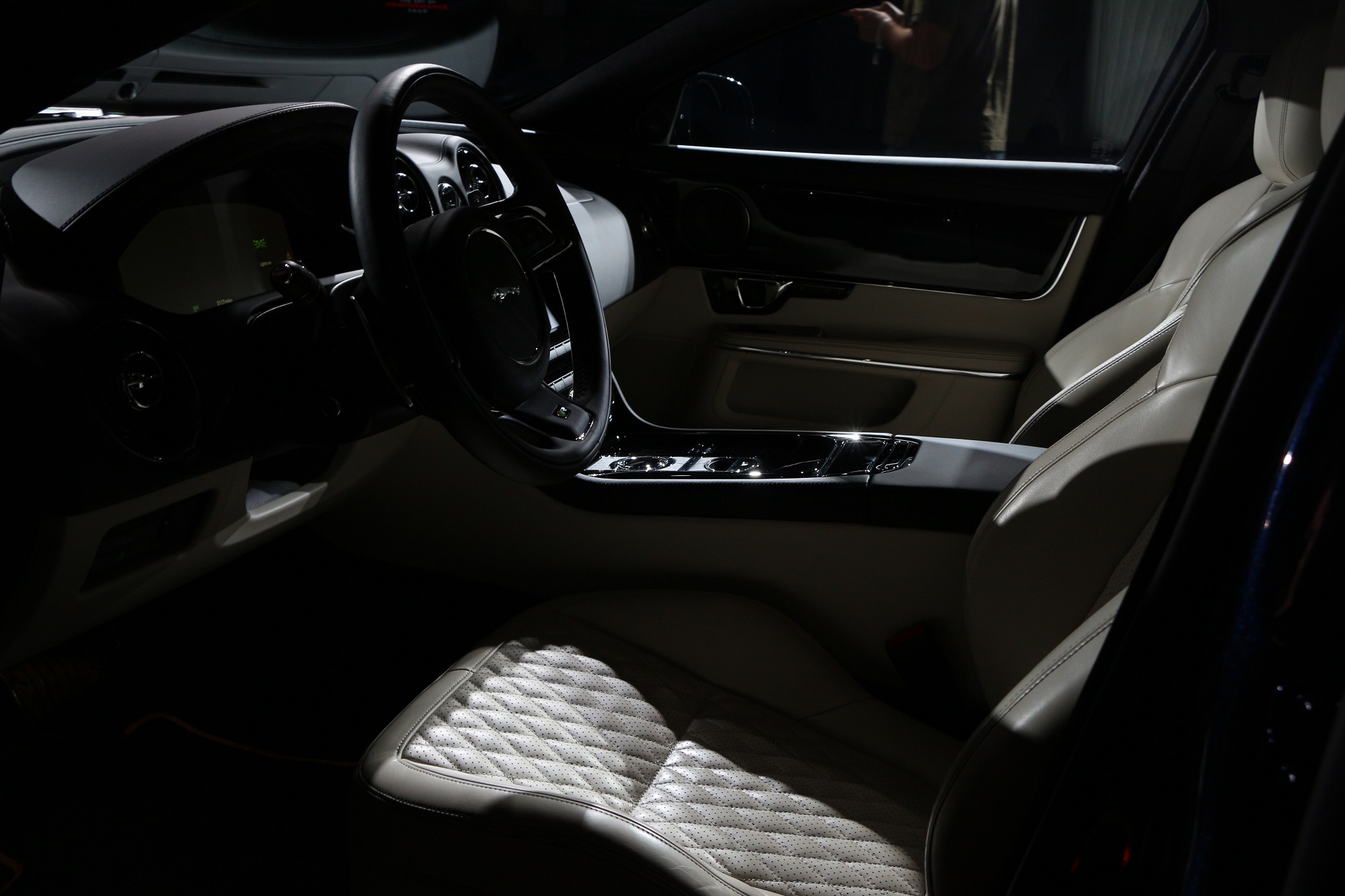 We covered the breaking news of the XJR575 super saloon after its announcement. This BMW M5 fighter packs even more power from its supercharged V8 engine. If the 575 designation didn’t give it away, it’s that much. Naturally, being an XJ, the interior appointments are top notch.The cabin of this XJR575 was adorned in white, quilted leather. The big XJ certainly has menace, with its blacked out exterior trim. That it sat in partial darkness also helped its evil villain credentials.
