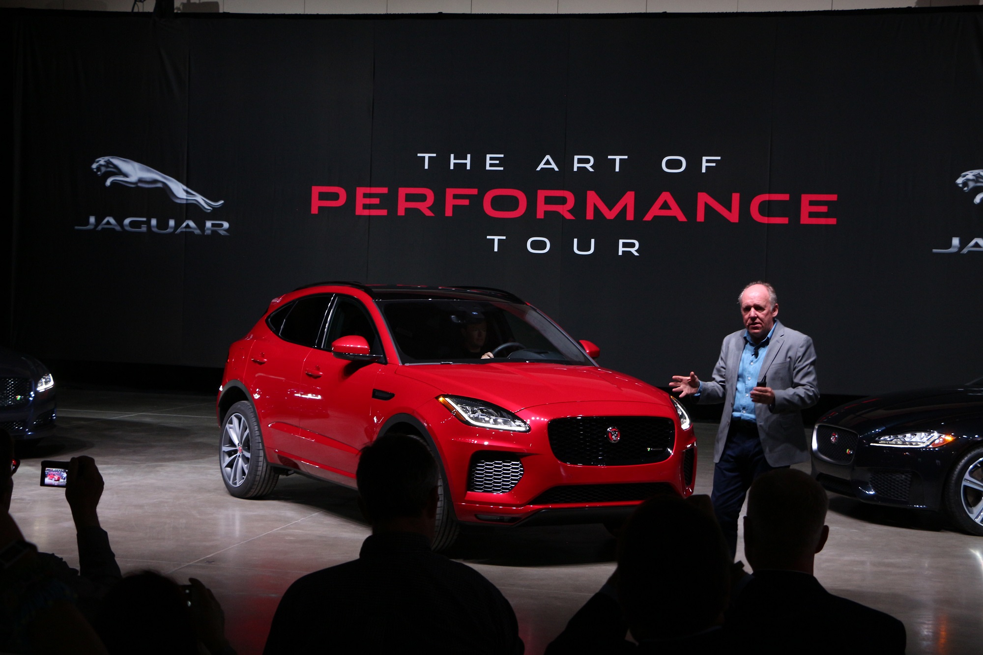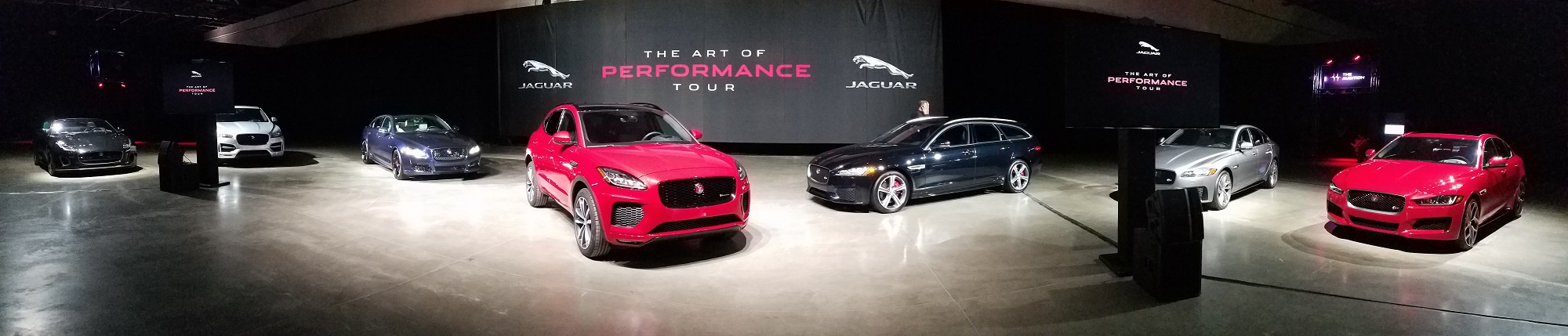 After this, all the lights came on, the silk covers were drawn back, and there sat the entire 2018 Jaguar model line up.