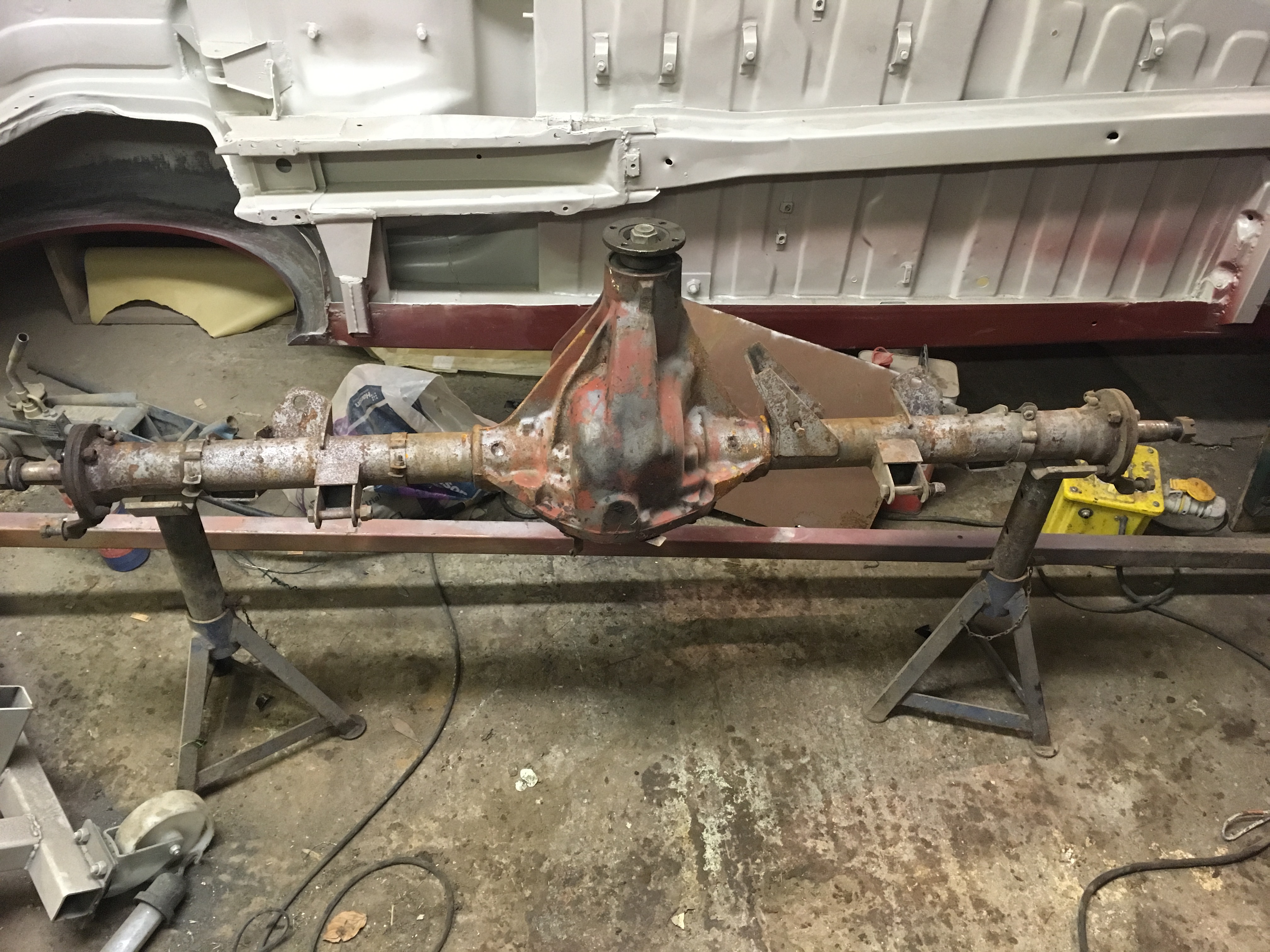 Under the car, suspension components are kept as preserved as possible, only replacing what’s actually needed (rubber bushings), while sand blasting and re-painting anything else that’s still good enough to go back on the car (linkages, subframes). As well, the brakes have been completely refurbished and rebuilt.