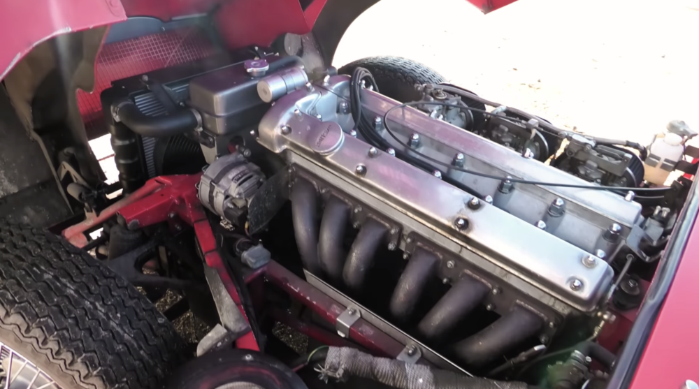 The E-type available arrived in a 2+2, but that was no bother. It simply gave more things to talk about compared to the open-top version. Canfield does a walk-around of the car and notes the car’s dimensions. He says, “as well as the extra two inches of height, it also has an extended wheel base by 9 inches.” In showing us the inside and engine bay, we see this car is in exceptionally good condition for driving.
