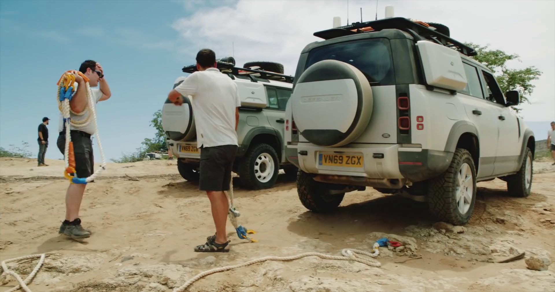 Land Rover Defender 110s Rescue a Stranded Tractor Trailer