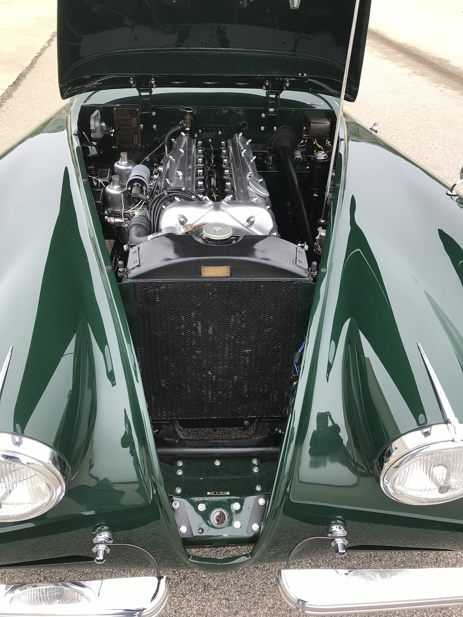 The example we found on Bringatrailer.com sports a rebuilt numbers matching engine, but also some smart modifications have been added. The 6-volt battery has been replaced with a modern 12-volt unit along with a whole new wiring harness. The factory rope seals have been upgraded to stainless and Teflon and it has a stainless steel ceramic coated exhaust. The colors are also very different from the original. The Dove Gray paint is gone and replaced by British Racing Green. The Suede Green interior is now finished with a beige leather.