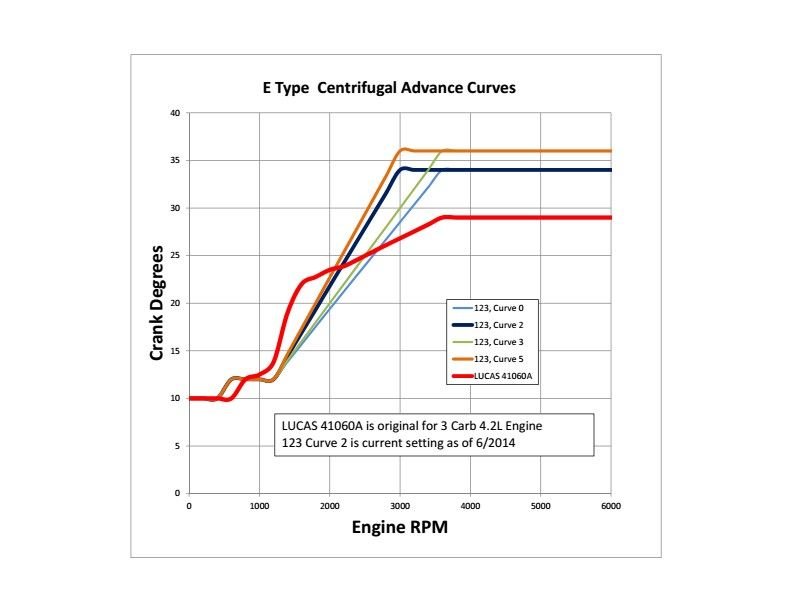 123 fixed curves are not ideal for long stoke street engines.. retarded at lower RPMs and Advanced at higher RPMs, but many Jaguar owners have found them acceptable. ( seems # 0 or # 2 work best most frequently).. Developing your own curve by finding correct Lucas Curve and converting it to absolute metric would be the best, but it requires some work.
