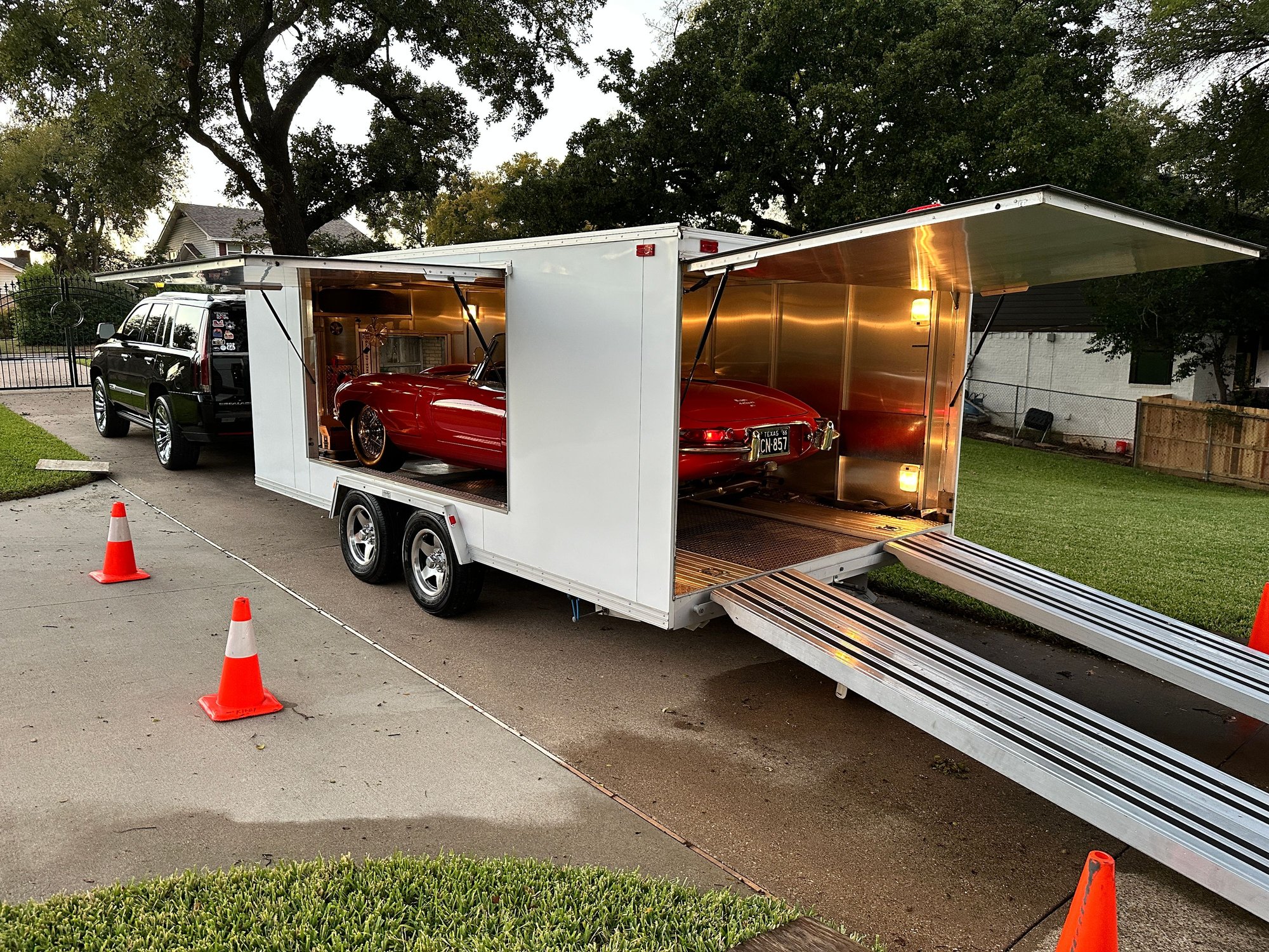I decided against Jeff's Resurrections in Taylor, Texas. He never returned my two most-recent phone calls after putting me off for almost a year, by first telling me "by Christmas" (2024), then "next summer". In July, he told me that he would be able to take my Jag in "after Pebble Beach". After that famous event was over, I made my two referenced phone calls. It is bad business ethics to treat a potential customer this way, with $50,000+ to spend. In late September, I took Valerie Stabenow's advice (see her reply post above) and contacted Team CJ Works in Austin, Texas. ("CJ" stands for Classic Jaguar, I soon discovered). The owners are Dan and Justine Mooney (transplants from the UK) who have specialized in restoring E-Types for 30 years. In fact, Dan absolutely loves E-Types (even though he drives a new Ferrari). When I called them and was transferred to Justine, she told me to bring my Jaguar to them on Oct. 28th. After confirming with her the day before, I loaded my car into my Trailex Sportscar trailer and headed south from my hometown of Arlington. It took me 3-1/2 hours one-way and when I got there, Justine met me at the front door, introduced me to Pat (my car's project manager) and then her husband Dan. After Pat drove my Jag out of my trailer and into their cavernous shop, Justine gave me a tour of their complex of buildings, including the paint and body shop next door. What an impressive business! It is spotlessly clean and with loads of employees busily working, restoring a number of vintage Ferraris, a Lamborghini Miura, an SKSS, numerous other vintage sports cars and, of course four other E-Types besides mine, including a gorgeous and impressive Lightweight E-Type replica. Justine tells me to plan on getting the car back in the spring. I can't wait!