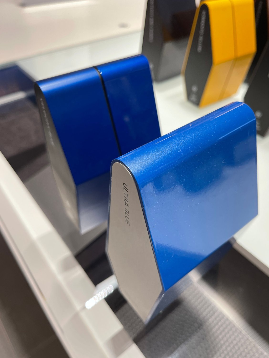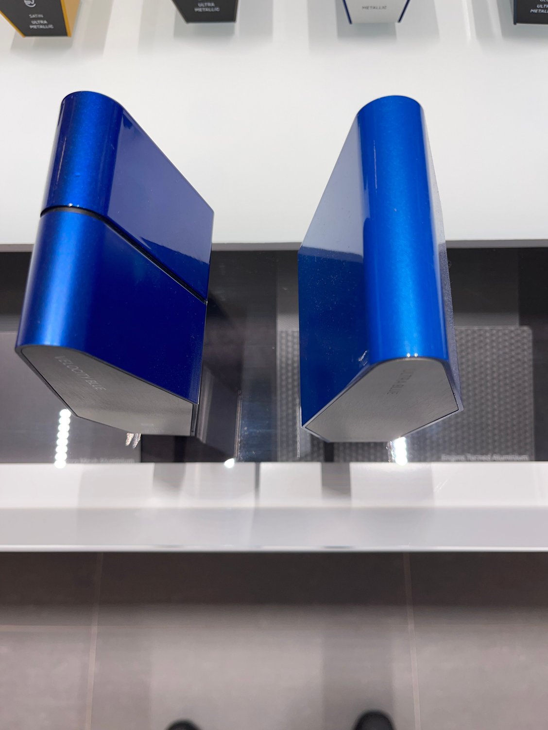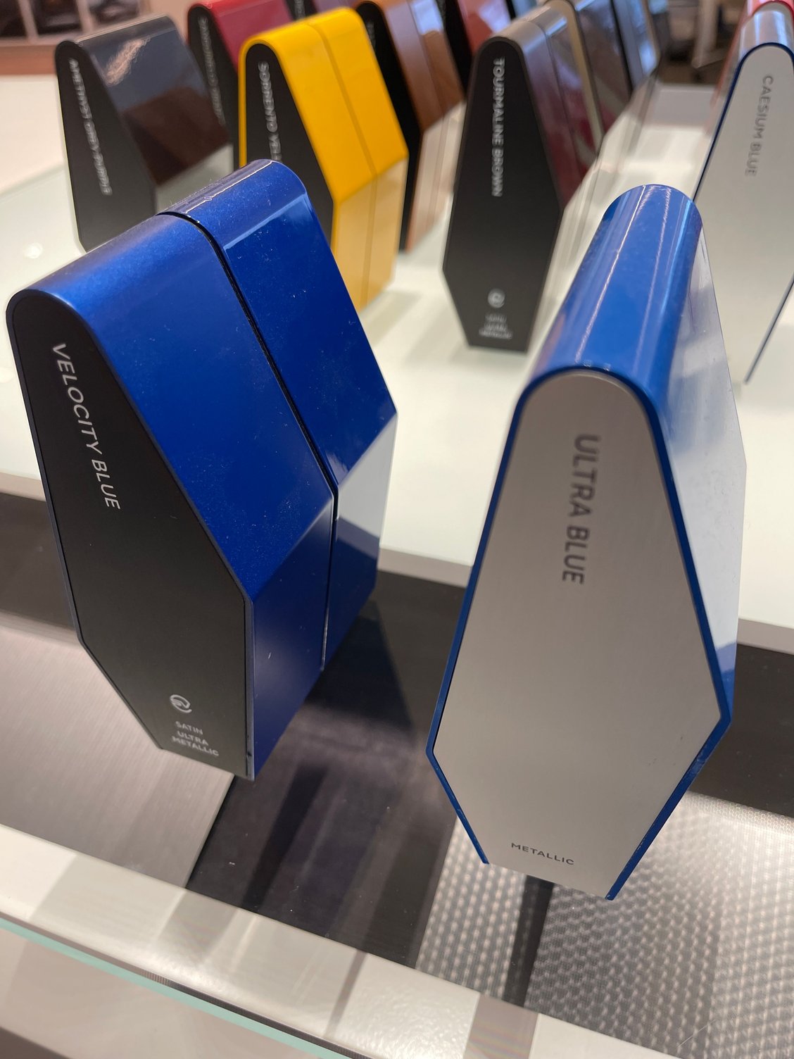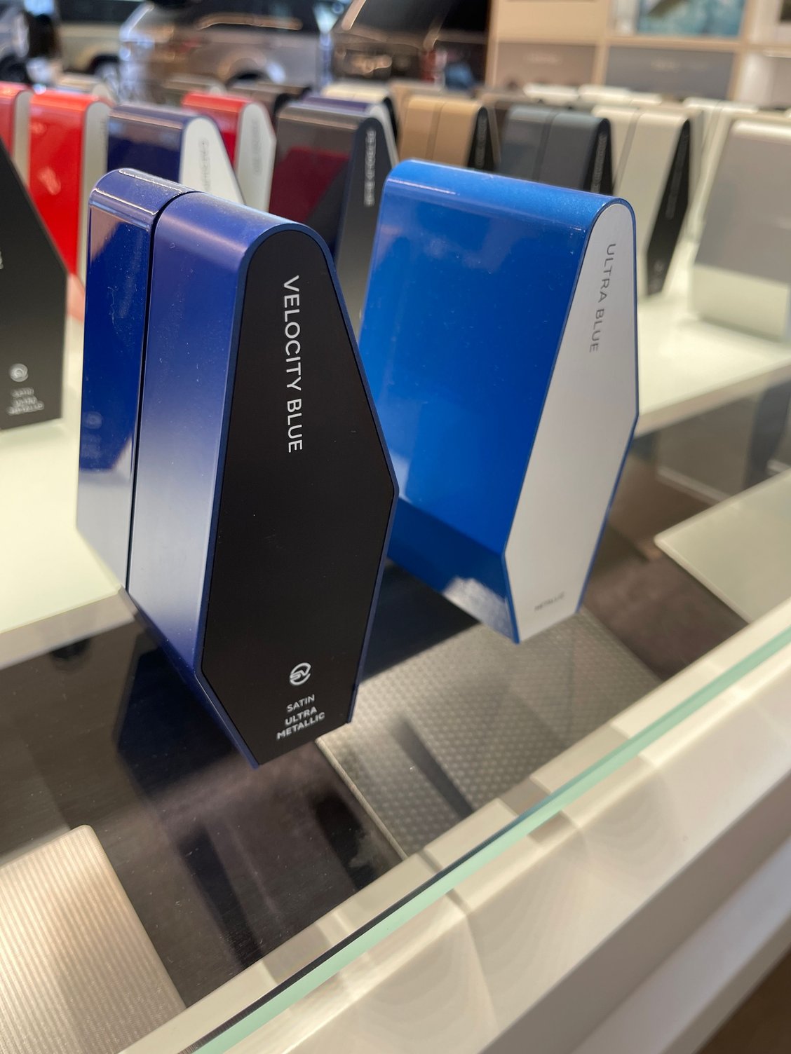 I stopped by the dealer to get something out of my problematic SVR , took pics of the SVO velocity blue and ultra blue samples in the showroom