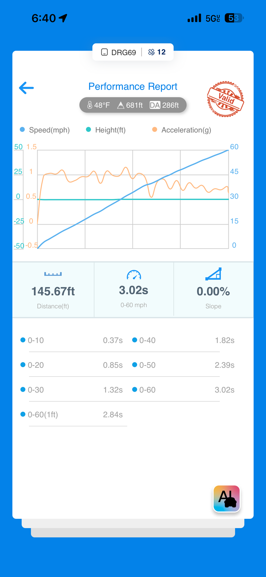 Sure and that's the fastest any VAp car was ever to able to achieve, might want to double check DA at that track too, we run 10.7 on ours for comparison.