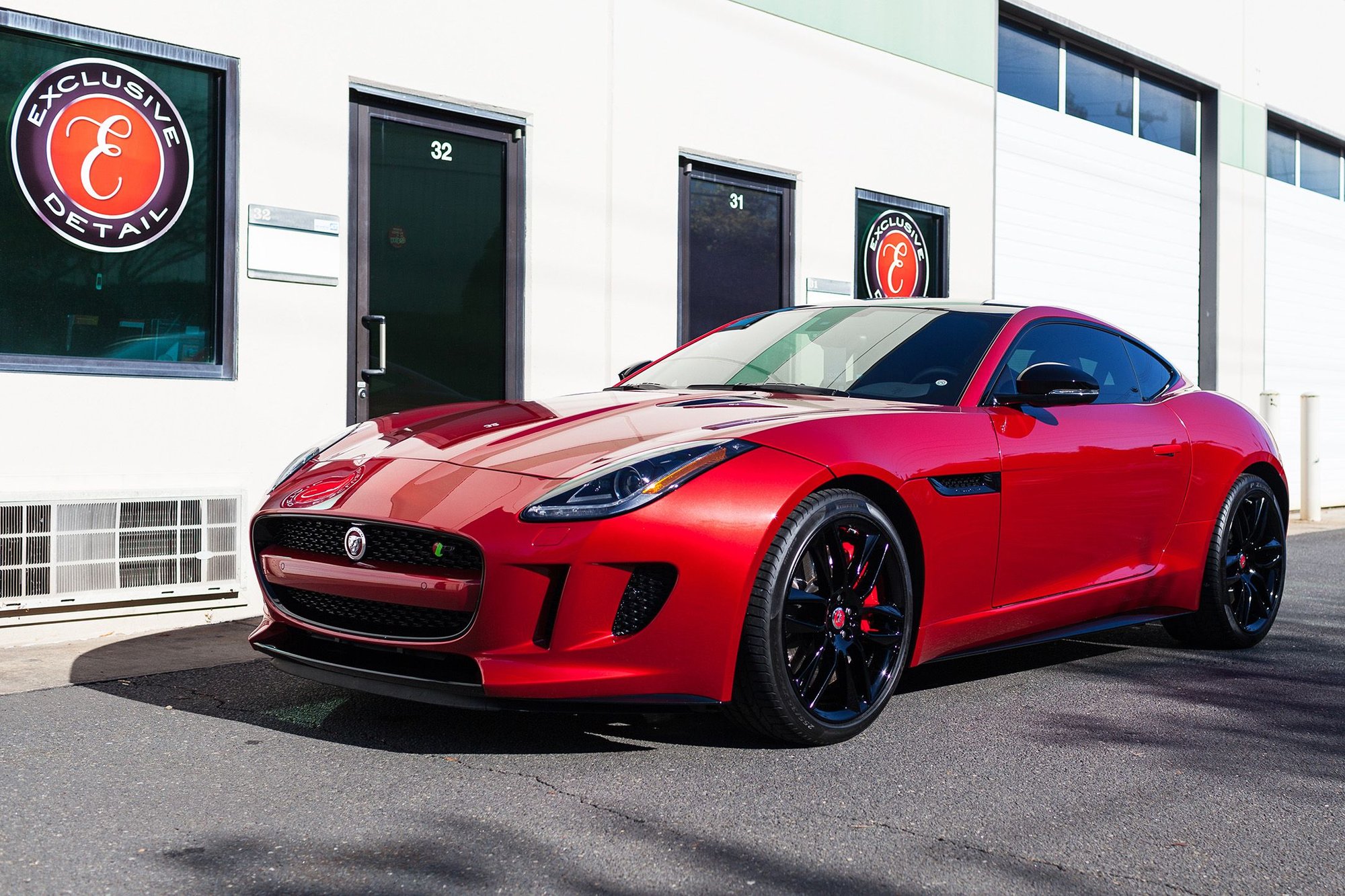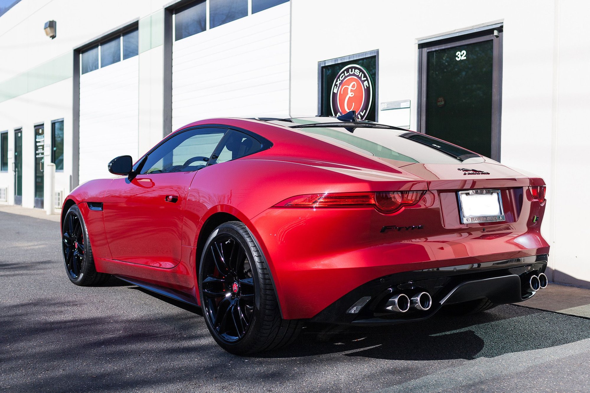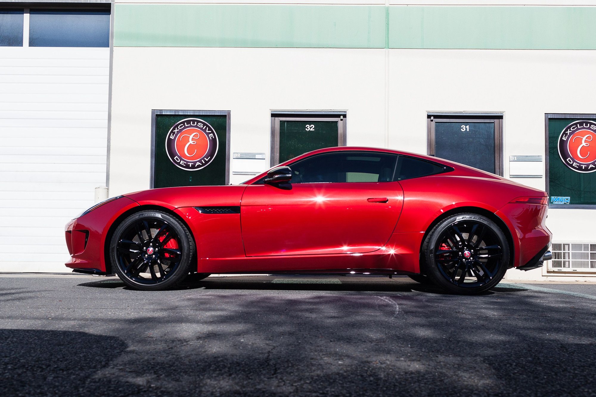 I've been hanging out in this forum for several months but I didn't purchase an F-type until 2 weeks ago. I was in search of Italian Racing Red or Ammonite grey with black tornado wheels and the black pack. I ended up with Italian Racing Red with black Gyrodynes and the black pack. My F-type has spent the last few days with my detailer to get paint correction, Xpel paint protection film and Opti-Coat wax on the car and wheels. My detailer did an excellent job. The paint had a lot of swirl marks but he removed all of them and brought the paint back to life. The only thing left for me to do is to order a front grill bar to replace the one that the previous owner painted to match the car. Here are a few pics of it. I hope to do a photoshoot of the car this weekend.