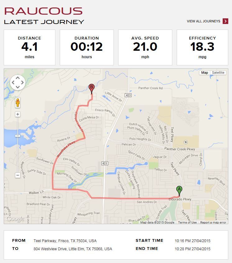 Here is a snapshot of my last quick trip around the block and to the gas station.