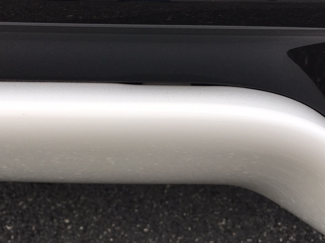 I'll try and take a pic tomorrow with better light, but my farthest right clip (when looking at the rear of the car) is not inserted completely. I got under the car to see if I could push it in further, but no go. As a result, I'm left with a tiny gap which now my eye goes to right away and annoys me! And my car is white, so it looks even more noticeable. My dealer isn't exactly close and I'd rather avoid going if someone else has experienced this and can recommend how to man handle the diffuser without breaking it