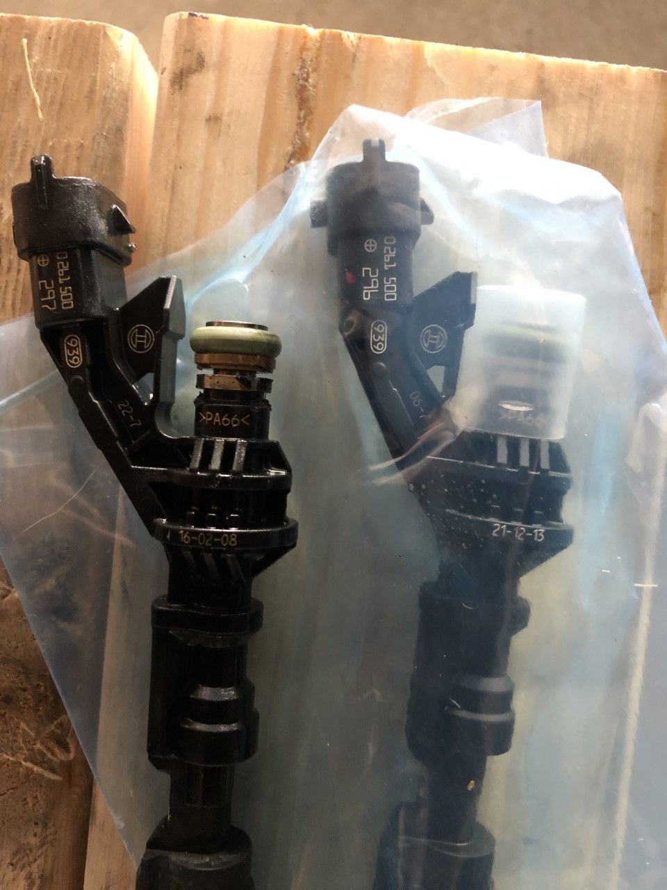 For anyone who needs these, the correct JLR part number is C2D55182. It also corresponds to the Bosch part number 261500296. You can also correlate the serials on the injectors themselves. In this case, the originals were FX23-9F593-AC. I called several places and found one of only a few in the US that carries these injectors new. It appears that Bosh may have made these solely for JLR and as such from what I can tell, only JLR overstock and oversupply places near import centers (Miami / LA) have them in stock. The place I purchased from cross-referenced my VIN to verify the new injectors were correct. In this case, they were off by a serial only: DX23-9F593-AC. Perhaps it's an earlier revision or something, but after installation and clearing codes the car runs normally again. The car is tuned (VAP Stage 4 -e85). Oddly enough I was only able to track this down by using the LandRover crossover part number: LR105431. Pictures are included to help guide you.