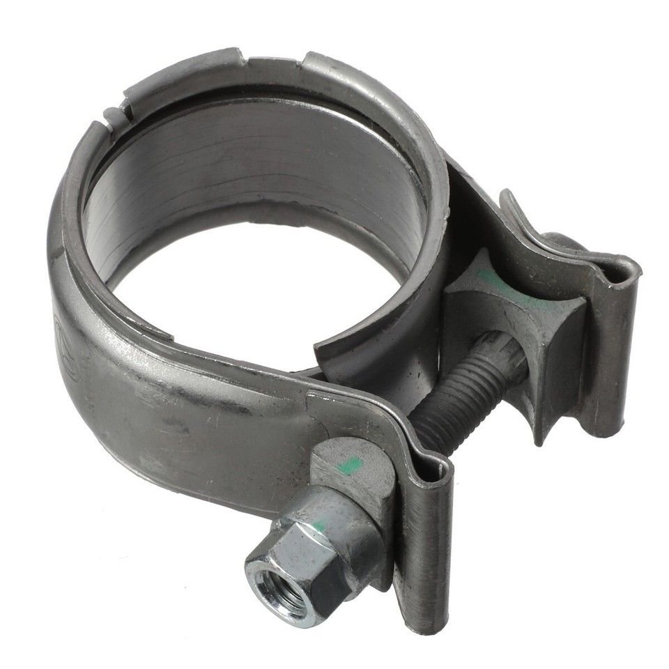 With the last nut off, I got to fight with the clamps that hold the down pipe to the mid pipe. The ridge in the downpipe means you have to open the clamp and the end of the mid pipe up pretty well, to get the ridge out. It does look like the clamps have some sort of lightweight metal gasket inside that helps with sealing. The drivers side shed a bit when I pulled the downpipe out. Reminded me of bearing confetti. You can see it inside the actual clamp in the picture below.