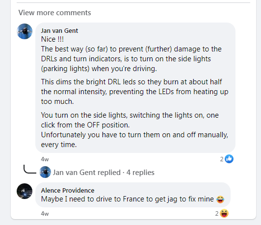While this approach seems logical, I doubt that there is any data logged that supports it extends the life of the DRL. Rather, ask yourself if turning on your parking lights each time you start up is worth potentially saving $5k+. I have an 18 and had my driver's side replaced last year. I was unaware of the issue until it occurred. Congrats on the F-Type, hope you enjoy it!