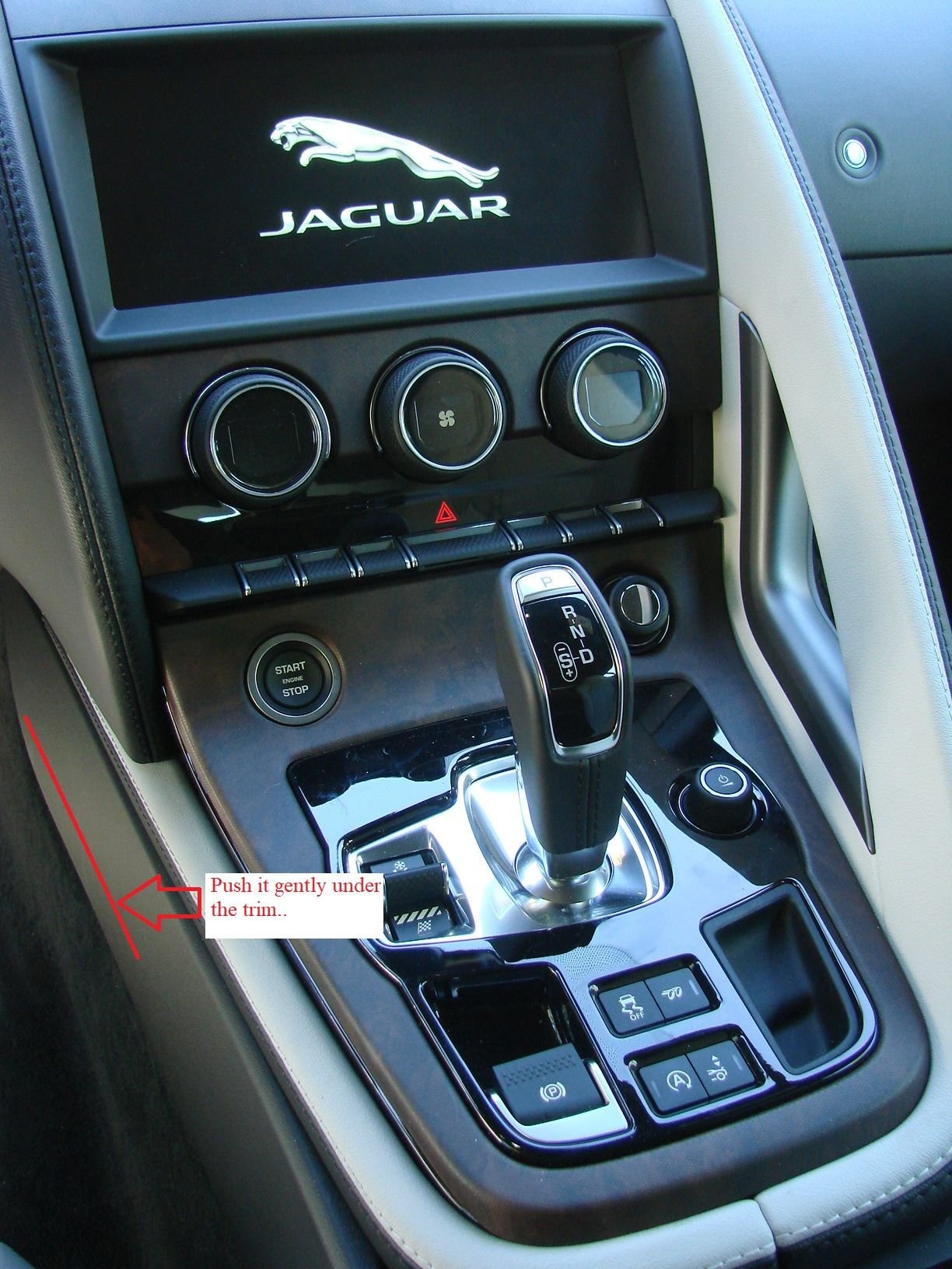 Then you push it under the trim on the centre console. Lead it all the way back until the trim ends, beyond the back of the chair (move chair forward to get there).
