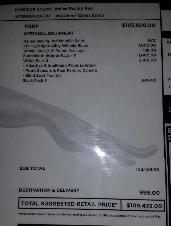 What is labeled as MSRP on the dealer invoice is $103,600, then they add the delivery charge of $995.