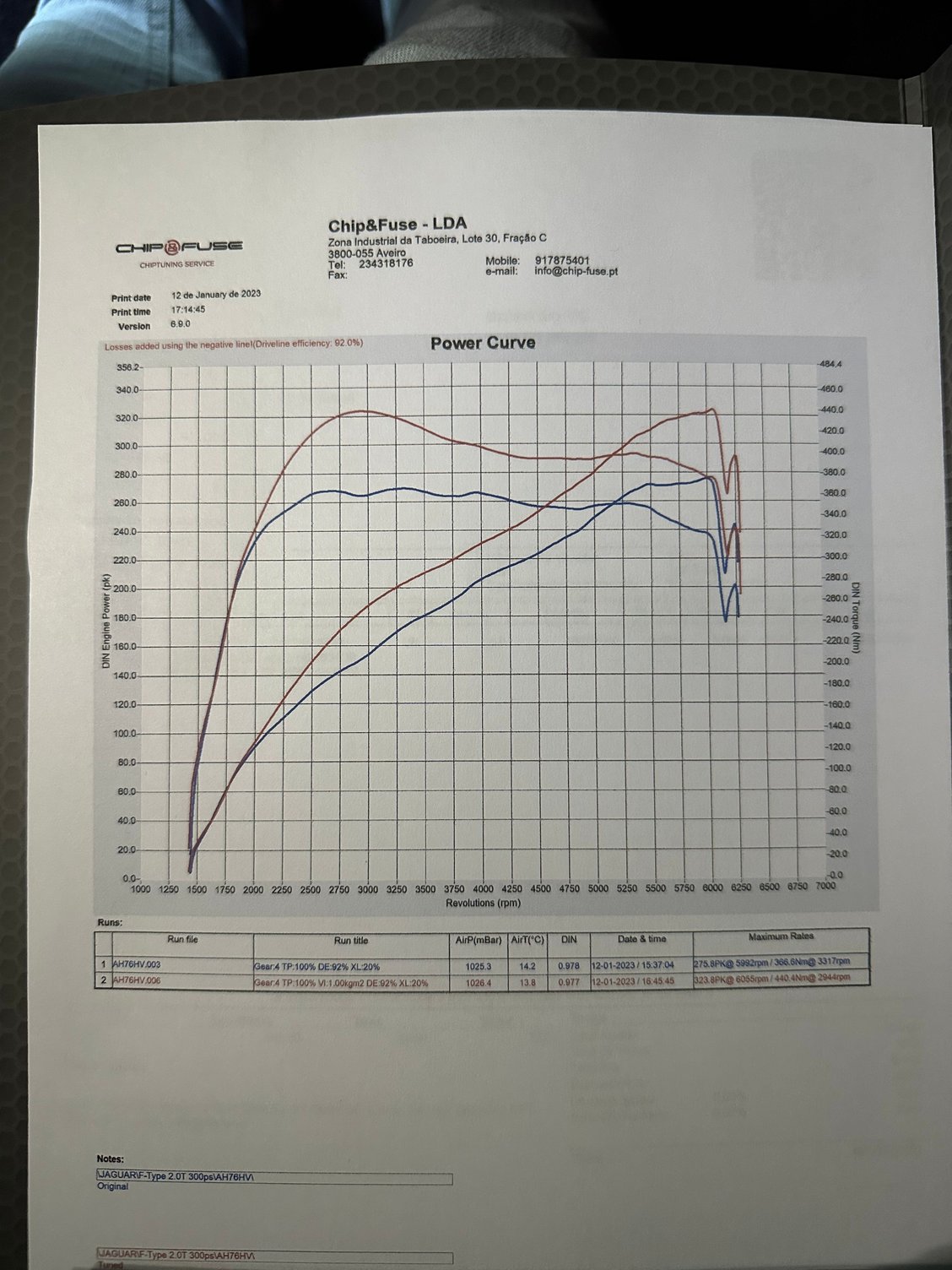 I had my F-Type P300 tuned an I got about the same torque but a lot more horsepower than your car my car measured stock 275.8hp at 5992rpm and 366.6nm at 3317rpm tuned it measured 323.8hp at 6055rpm and 440.4nm at 2944rpm