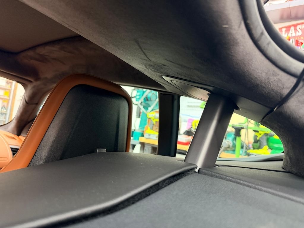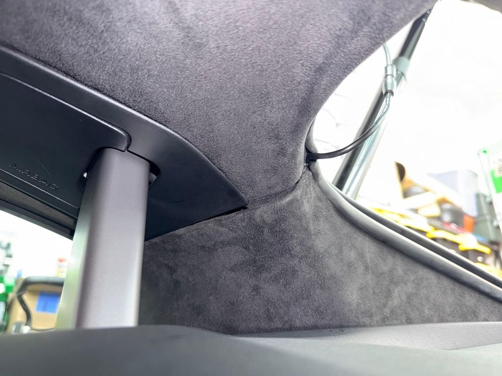 All the way to the back and inside those two rear pieces... Now, looking at the photo, I can see that I need to go back and reinsert it... a little bit of the cable is not fully inserted. I can see it near the plastic trim for the rollbar.