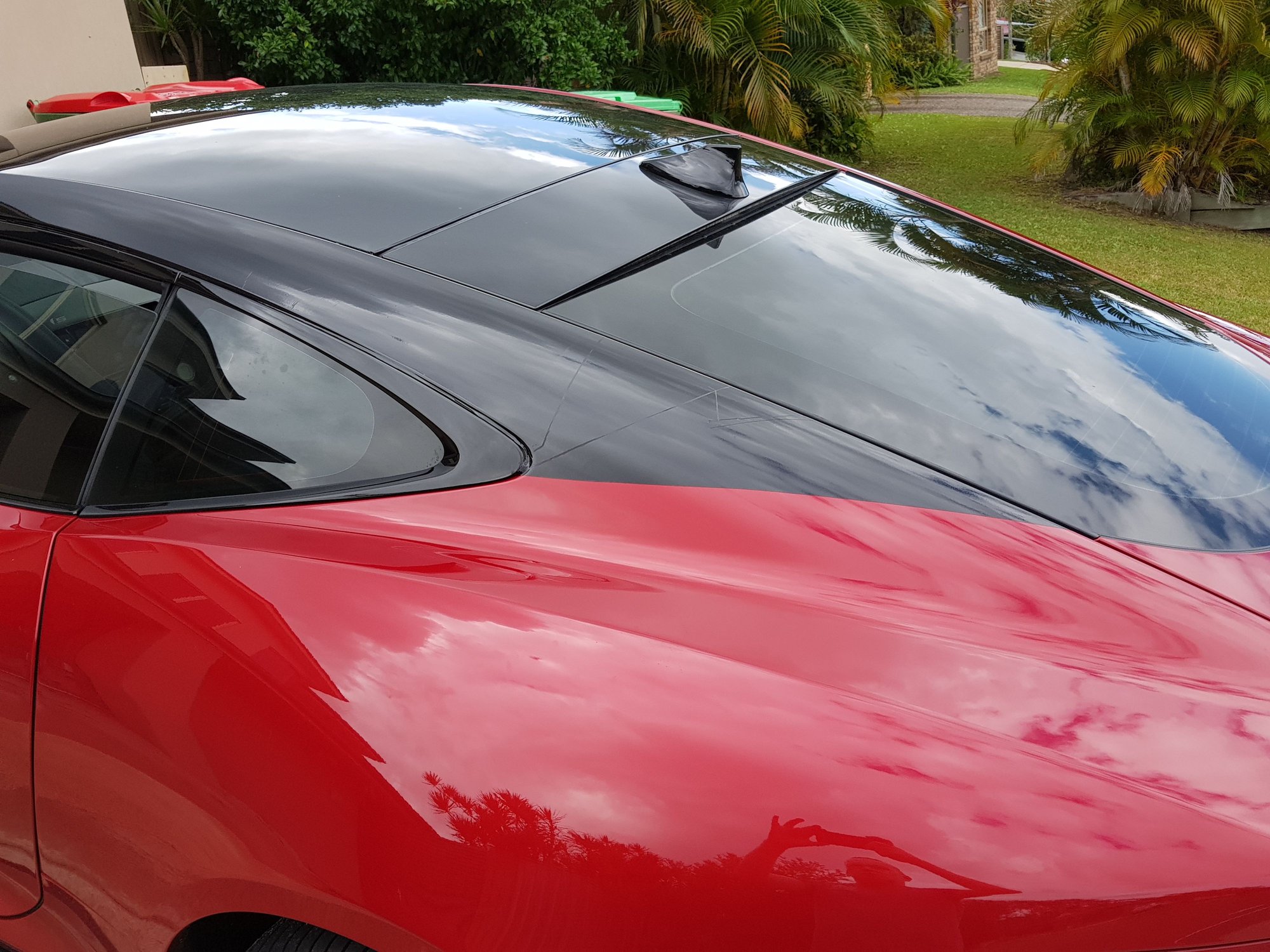 So I started with it short, like the red pillars on the astons whatever that another member recently used as inspiration for his wrap job. I then went medium, following the curve of the quarter glass, and finished long with the wrap essentially going from the quarter glass to the curve at the bottom of the hatch. You will notice I just kept putting wrap over wrap so the finish is getting worse, though I personally like the look of the "long" style better. I ran out of wrap and couldnt try the full aston look which I might end up going for anyway. Excuse my bins...