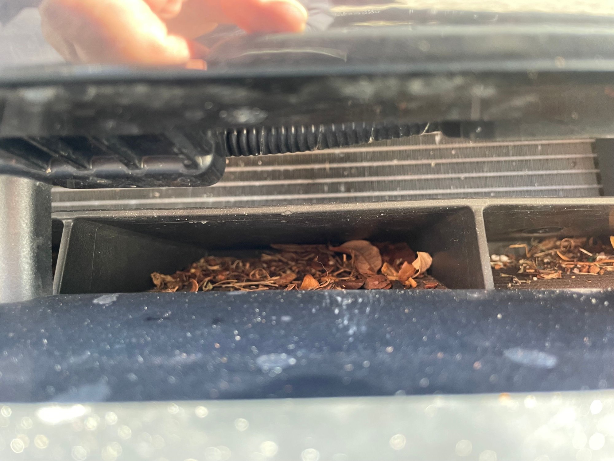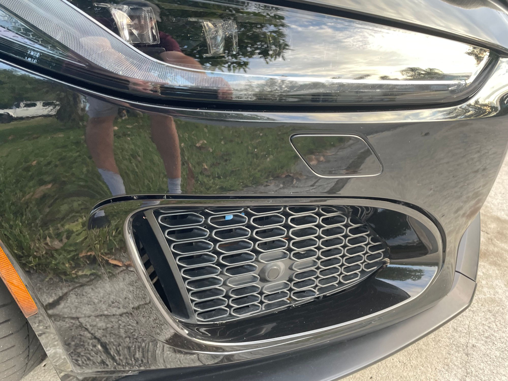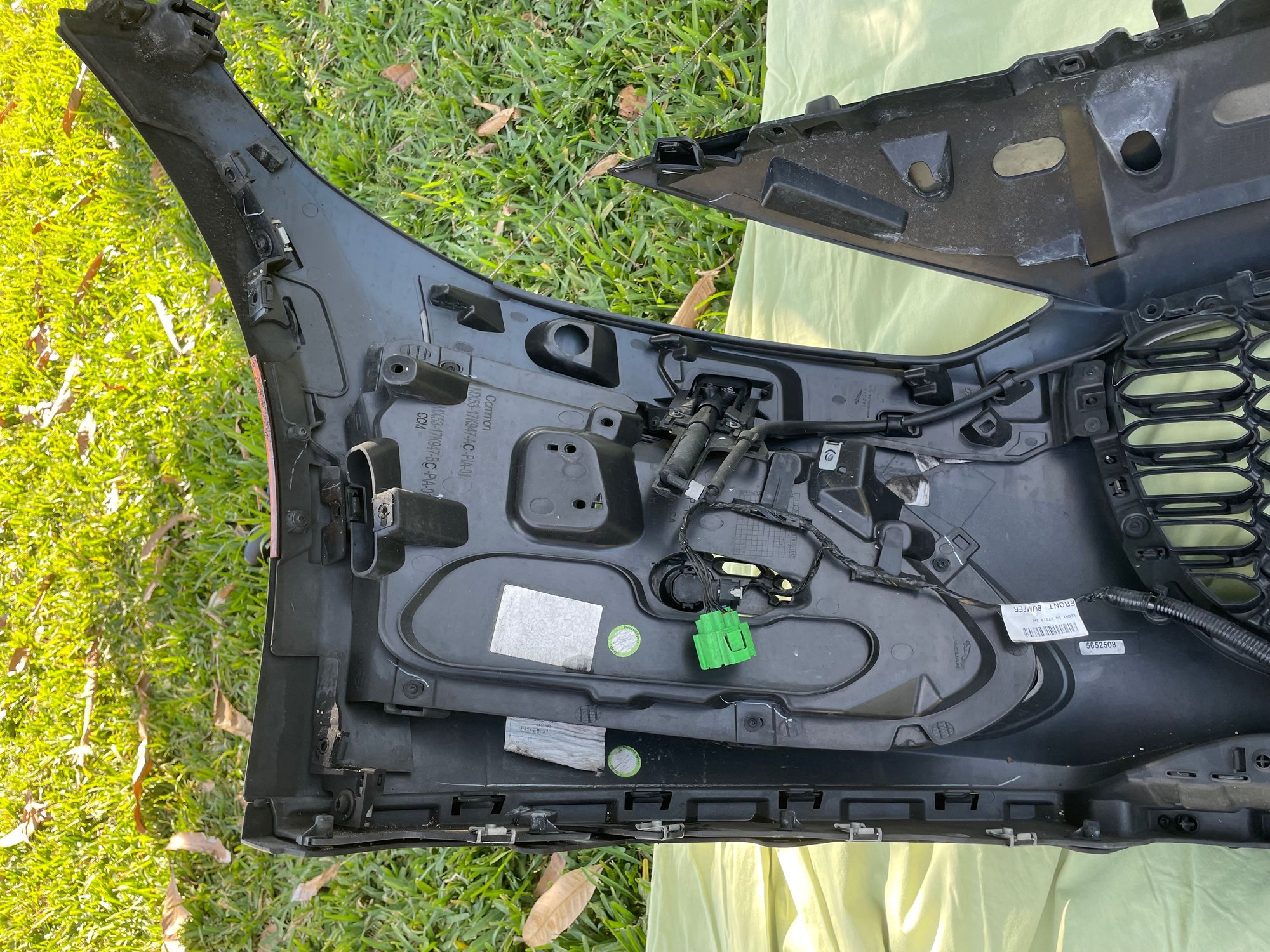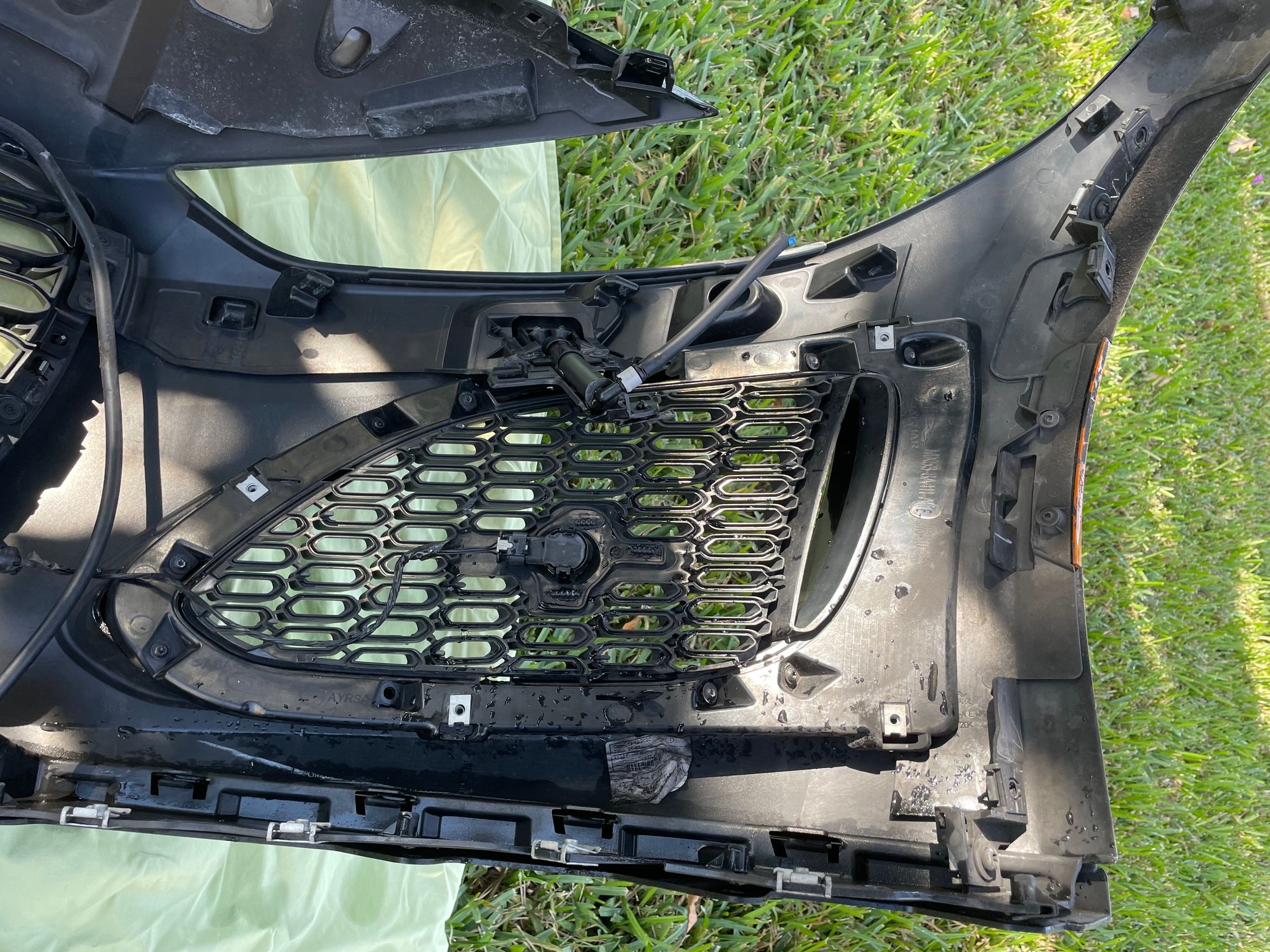 Got the bumper off and fixed the bezel and front lip. Before I took the bumper off I got a look at the lower intakes and saw they were filled with detritus. Vacuumed those out first. When I got the bumper off and went to take off the trim bezel and outer grill I saw that some of the plastic tabs and screw bases were broken by the previous owner (probably hit something with the bumper). The right blank cover was also missing. I wasn't able to make the bezel and front lip perfect but they're much better. I'll have to order new replacement parts.