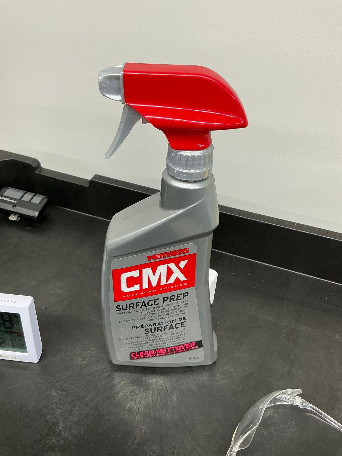 (3) Clean the attaching surface of the slat and the surface of the PPF in the wheel well with Mother's CMX Surface Prep (or equivalent, example Gyeon Prep):