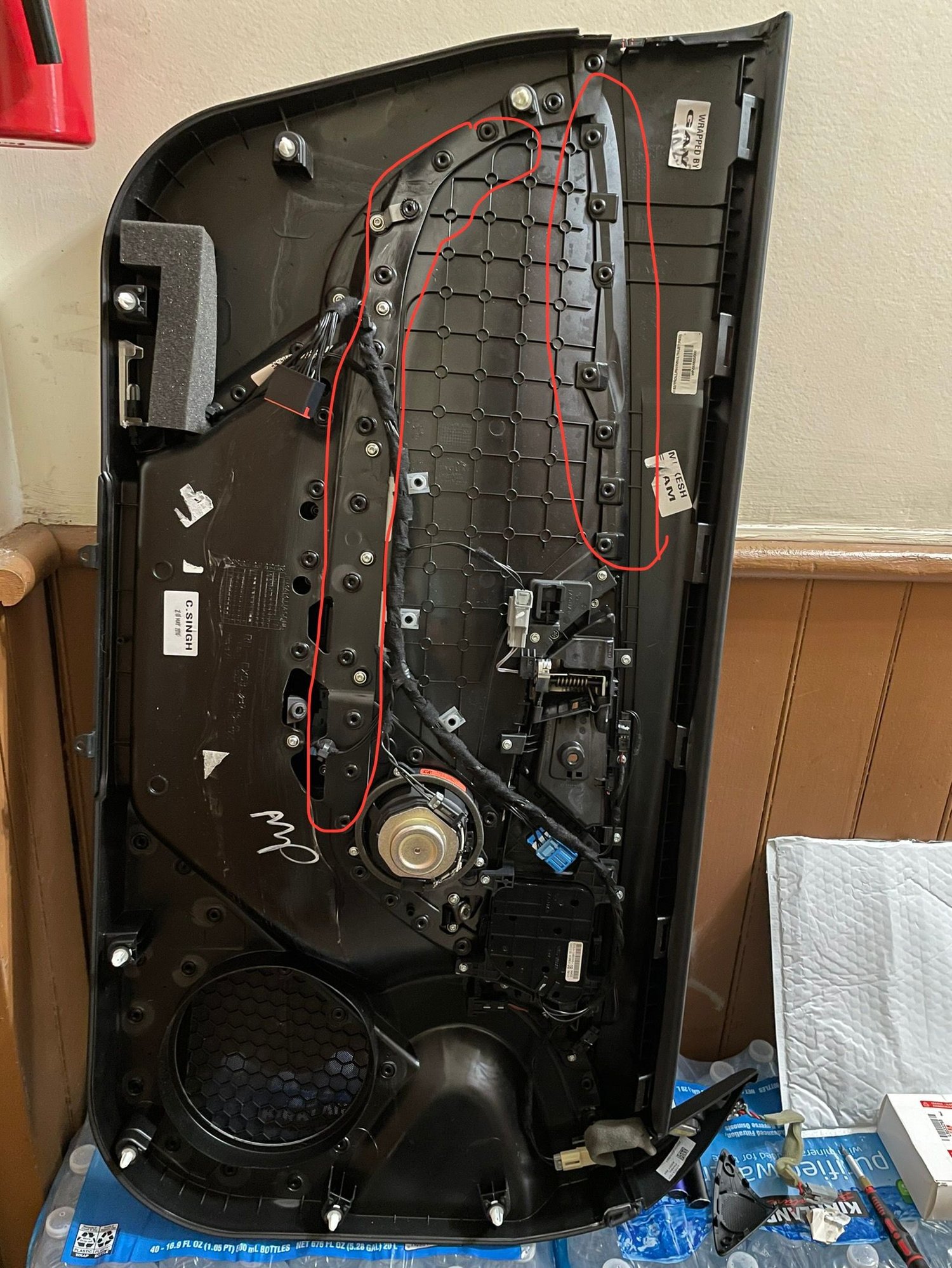 I’m trying to remove the speaker grilles(painting) and the leather piece by the door grab (glue behind has failed on both side and the leather is lifting).