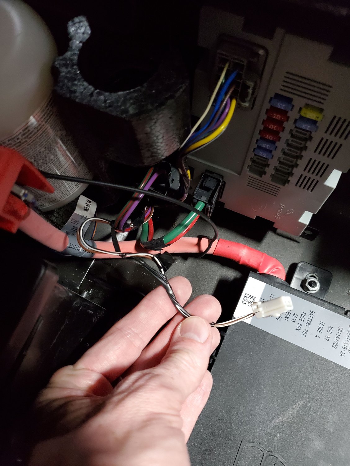 White wire in trunk near battery found not plugged in?