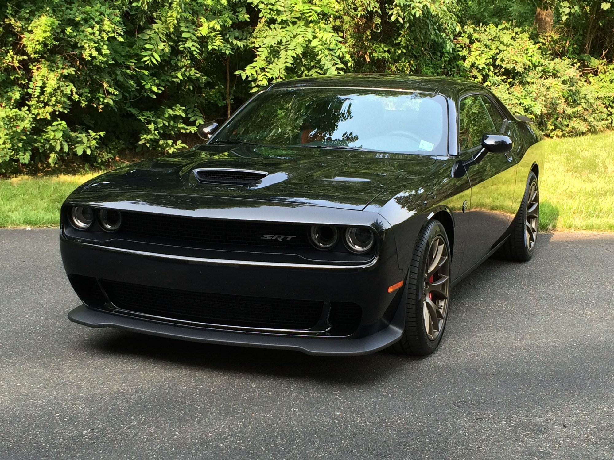 Here's a pic of a black 2015 Hellcat I owned at one time. The paint reflects the grass like a mirror. It was a Dodge paint job with a professional fixin' that included paint correction and CQuartz.