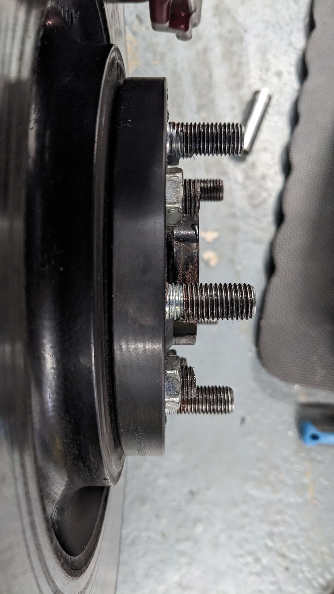 I say this because a few years ago I had cheap no-name Chinesium 15 mm spacers on the front wheels and one day while pootling along in the 'burbs one of them simply fell apart. It effectively tore itself off the wheel lugs with four of the five mounting holes splitting/tearing off.
