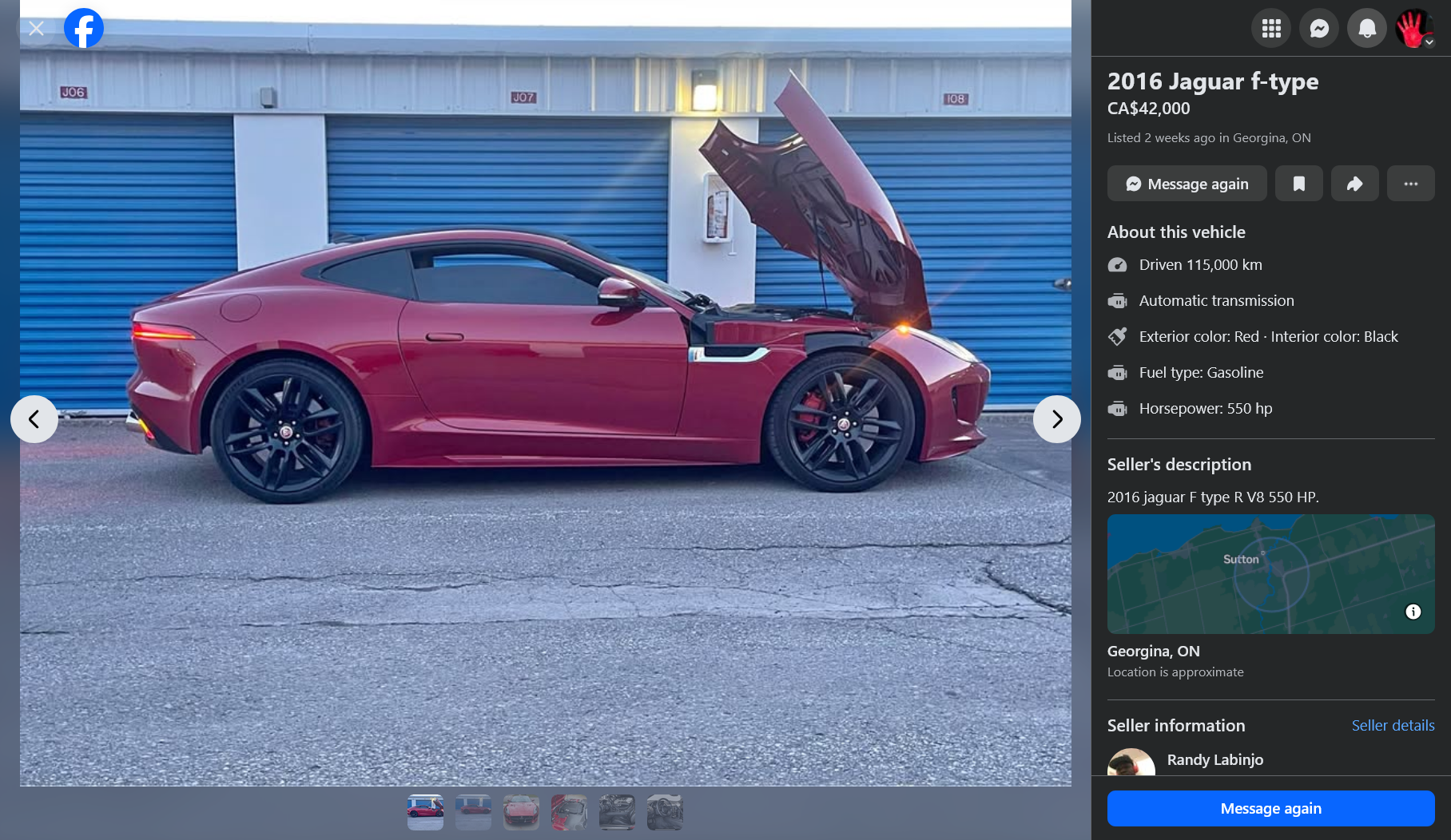 I had a bad experience with an F type seller seeming to be in Quebec. Seller (Rodrigues) claimed to be a Dental surgeon, who was sellling because of Canadian regulations obstacles to registering a US (lPennsylvania) titled car. A 2016 six cylinder MT with 40K mles, BRG convertible, he was asking $19K. He sent dozens of photos, we made a plan for shipping and inspection and he vanished.