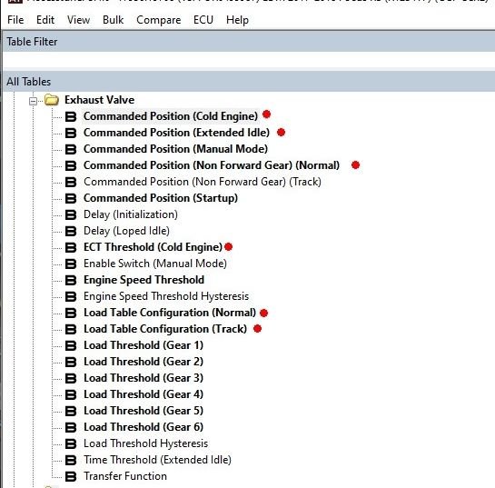 There is a page above all of this at the top level of the tune tables. Again, as a last comment, the dealer tech is not going to have a clue what is shown here. They only push the button that downloads this via the factory instructions in a SW flash. If this is in there, they can't validate is, only what the flash description is.