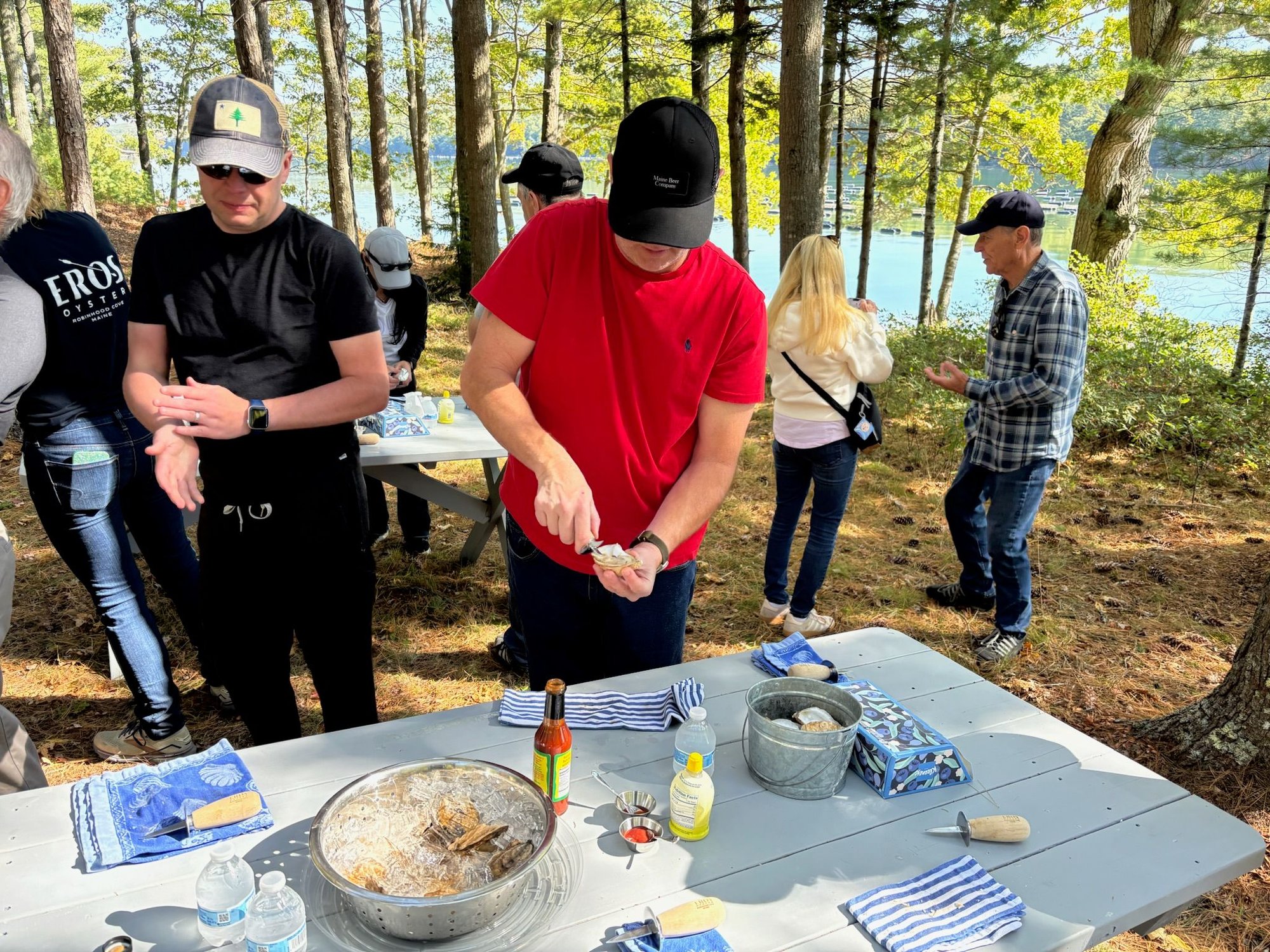I’ve forgotten how many of our kickoff dinners have been at Cook’s Lobster & Ale House www.cookslobster.com over the years, but owners Jen and Nick Charboneau always roll out the red carpet, even if that carpet is on gravel. The place was jamming that night—including a wedding rehearsal dinner and a bus tour—but GM Kevin blocked off “our spots” at the end of the parking lot and a more picturesque setting and delicious dinner could not be possible. It made, as always, the perfect way to start our weekend. Don’t believe me? Here is @DJS ’s drone shot for proof!
