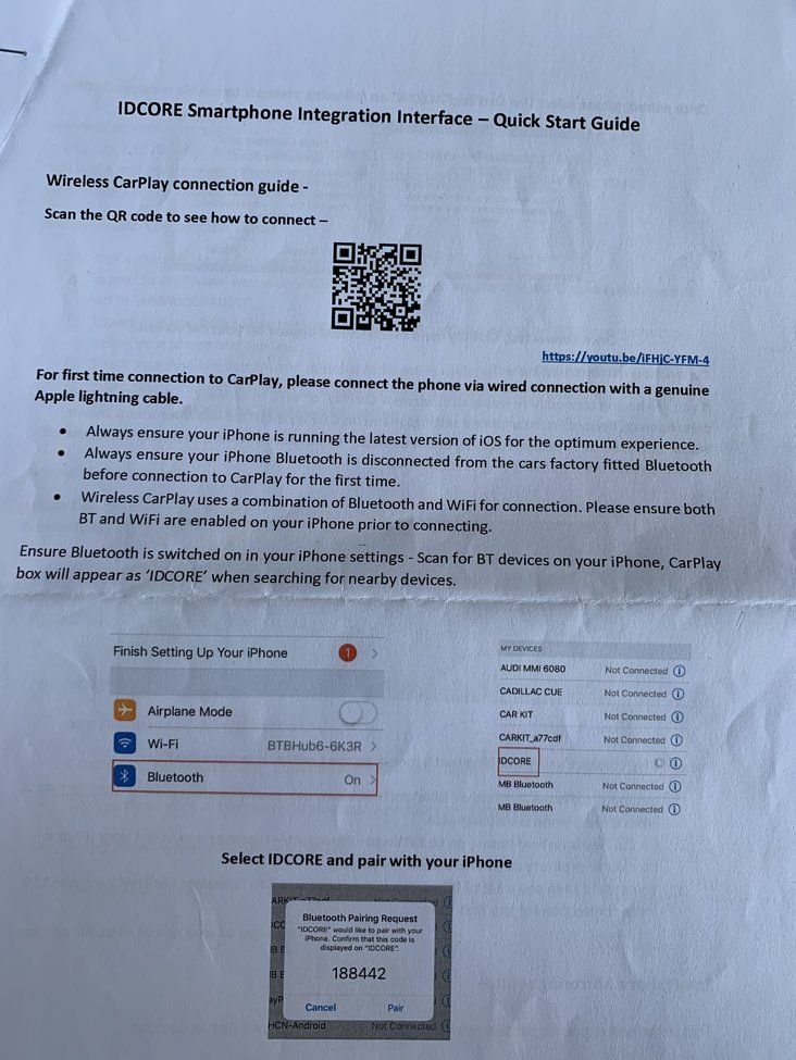 Once it’s all installed you have to connect phone via cable first. Then to get wireless make sure that Bluetooth is on for idcore and Jaguar and wifi connected to car. Can be a bit problematic.