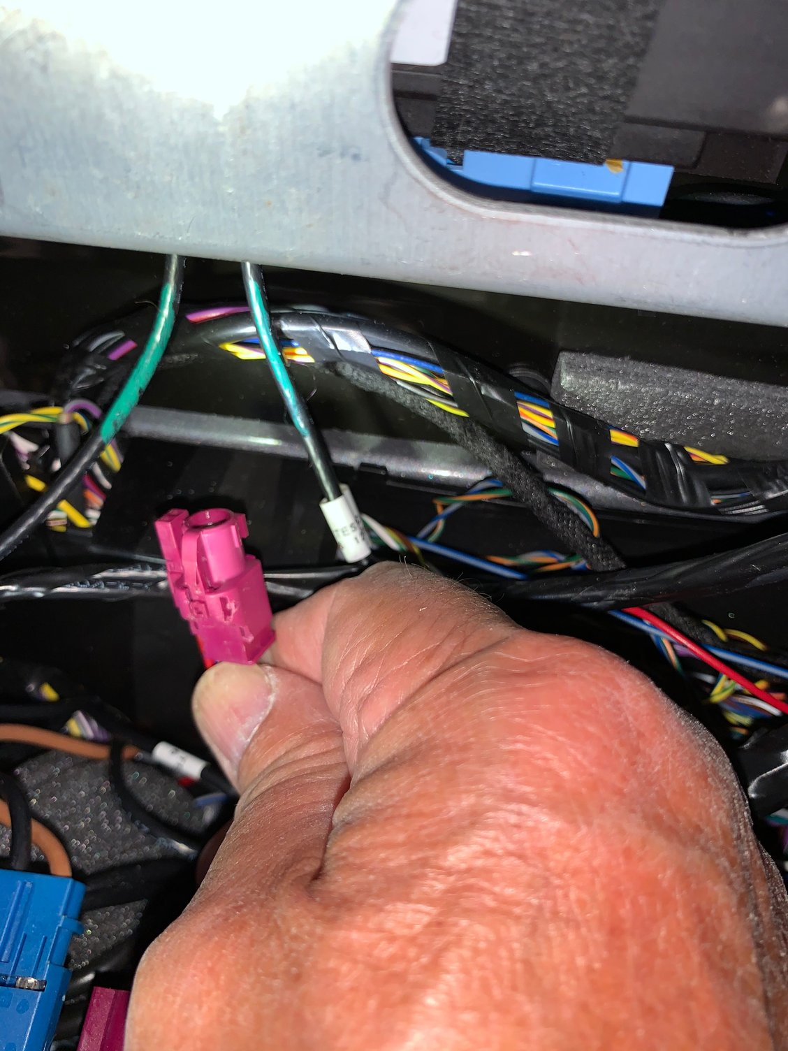 The pink plug on the Harman is tricky to disconnect. The release lever is on the underside.