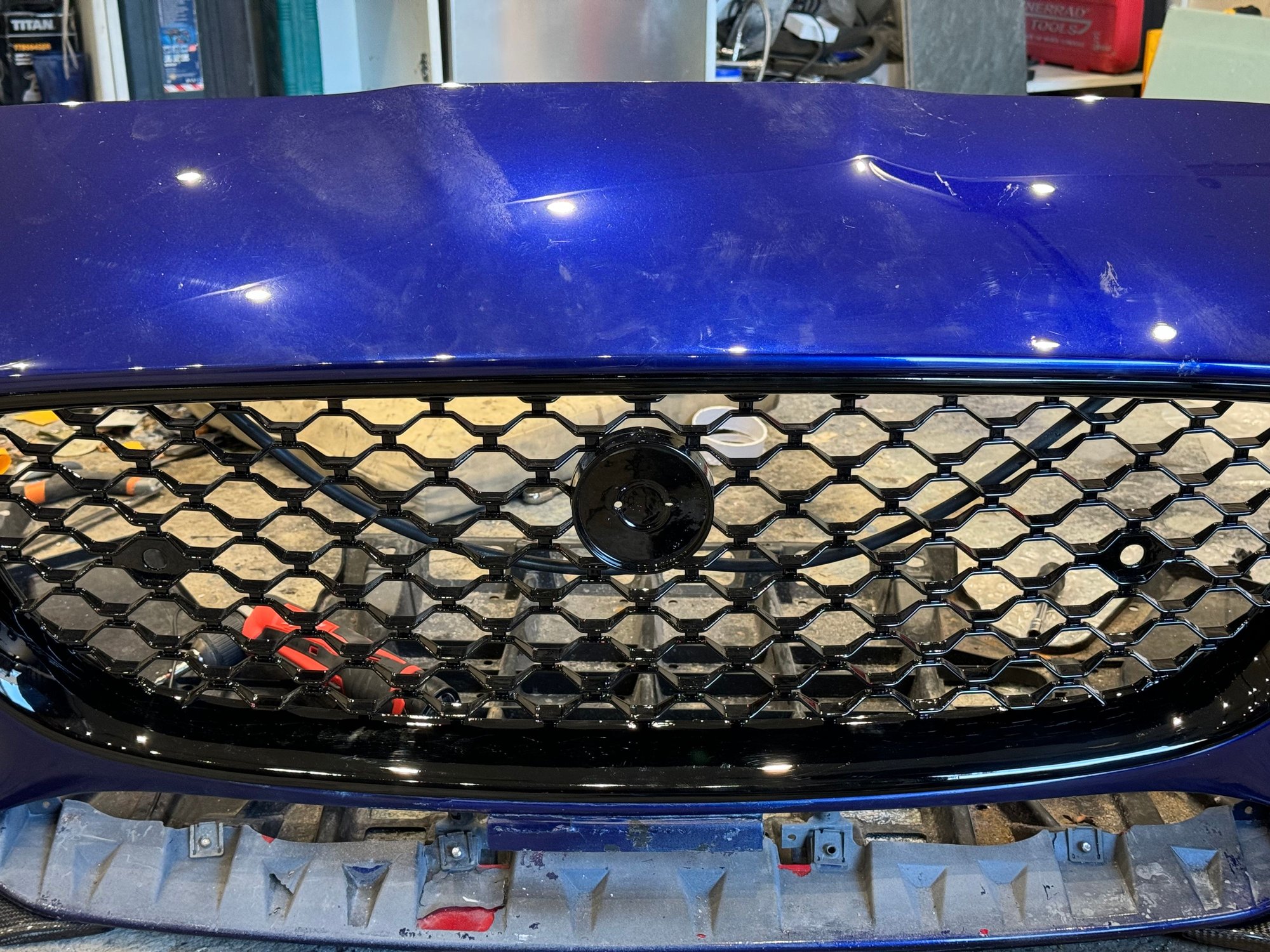 The only photo that’s not blurry looks like the e-pace grill conversion as the shape of the honeycomb is slightly different. Every other photo looks like it was snapped on an old 110?