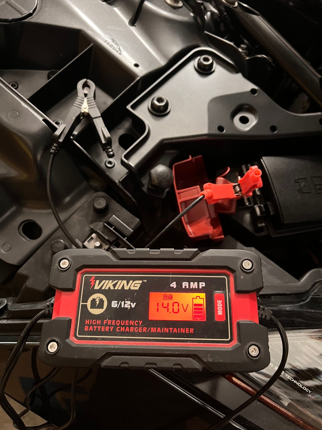 I did put the battery charger on-- 12v AGM is correct, no?-- and the battery does seem to be a bit low (pic attached). I've not started the car to see the running status (or clear codes) this morning, and I'm unsure if I should. I'd appreciate any thoughts on next steps.