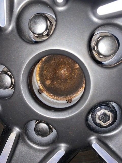 I took off my wheels to install a new set of First Edition rims, and what's underneath? A lot of rust, at all four wheel hubs. I live in New England but I don't take it out in storms, it stays garaged, all that. Why after four years, and only 16,000 miles, would the center of the hubs turn this brown? Anyone else have this happen?