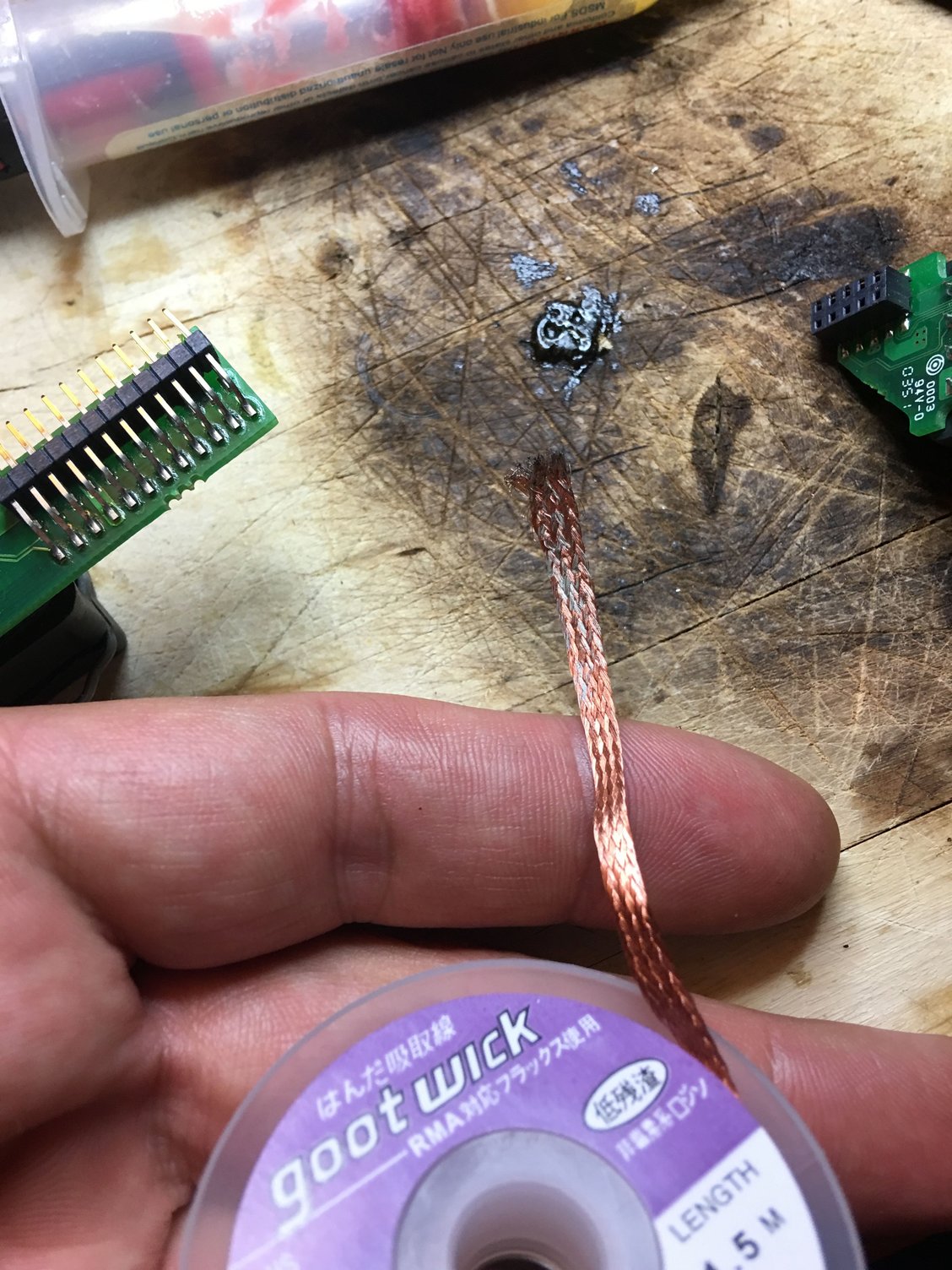 This is what you use to wick old solder. I didn't take more pictures as I was finally alone and not sure how much time I have. Plus taking pics alone when doing stuff takes 3 times as long.