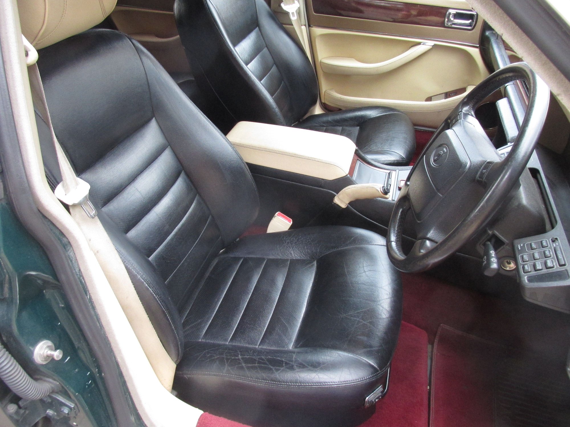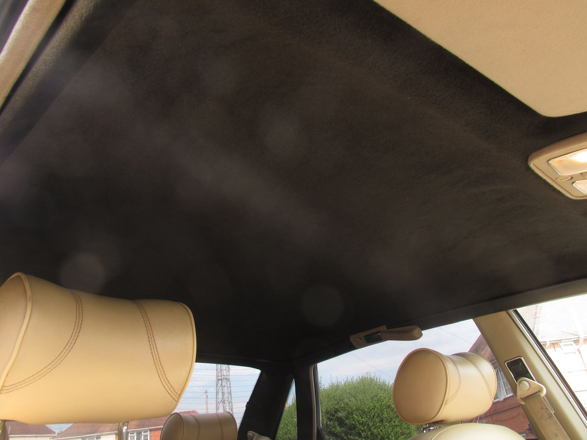 Thought it might be worth putting up a couple of pics of a work in progress. Not finished yet...if we ever can finish these. So far I've done the rear seats and the headlining and trim. The headrests and centre armrest are the original colour and I may leave as is unless I can get a decent matching leather dye. The dye itself is a water based liquid that cost approx £40 a litre and it goes a long way,250ml did everything you can see.