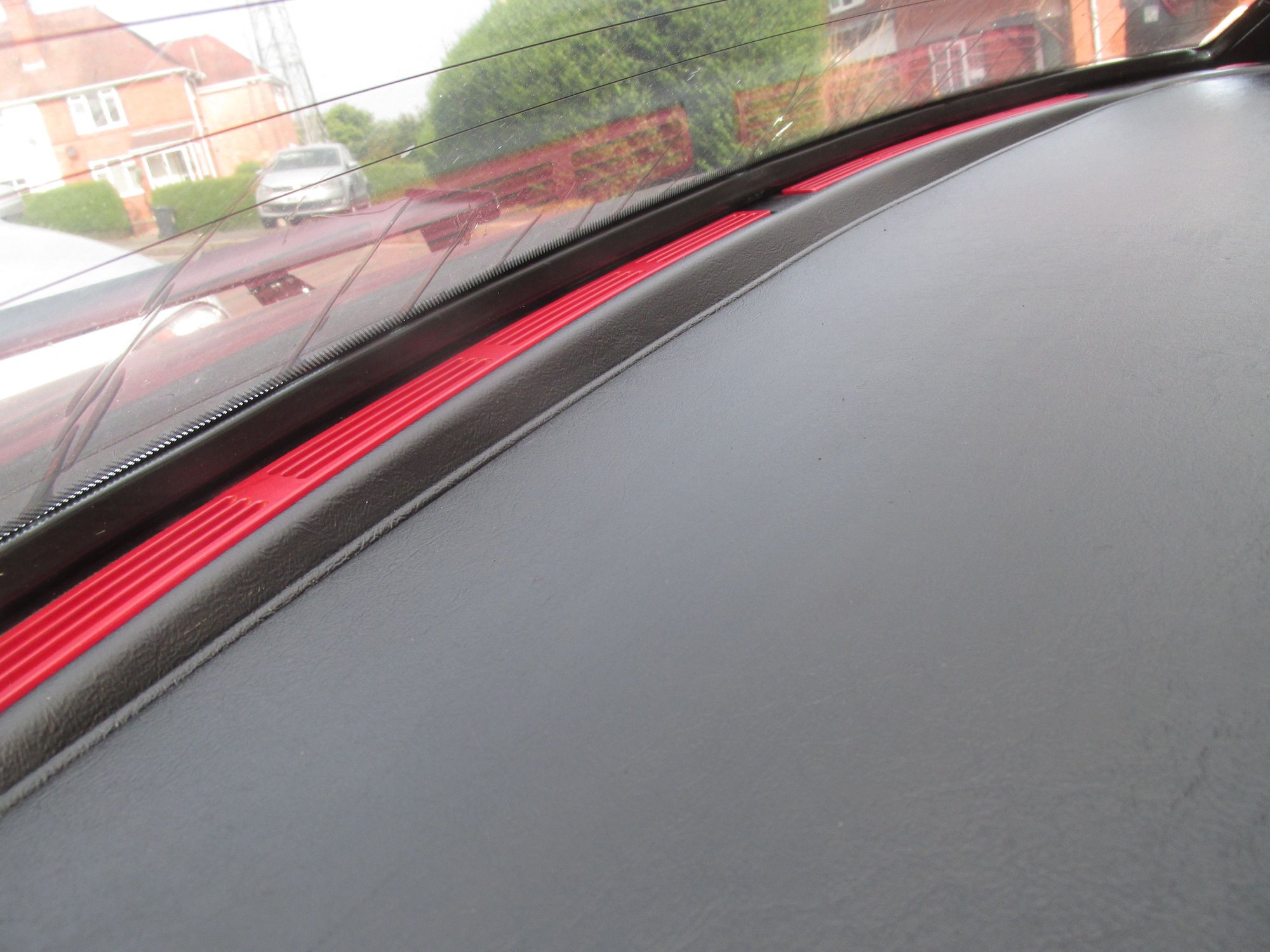 Just a quick update and this is definitely a work in progress. Should I find a good match to the carpet colour in leather dye or similar material I will (maybe) do the surround above the instrument cluster. The ski slope has a satin black wrap on it. The vent surround has been scuffed up and sprayed with CGG along with shifter surround. The leather part is missing due to the 'tabs' that hold it in place have broken and it won't sit true,slightly annoying. Also done both of the panels under the dash,either side and the fuse board surrounds. I'm just seeing what works at the moment, I like the black and could just do it all like that but I think just a few dabs of red in the right places sets it all off nicely.