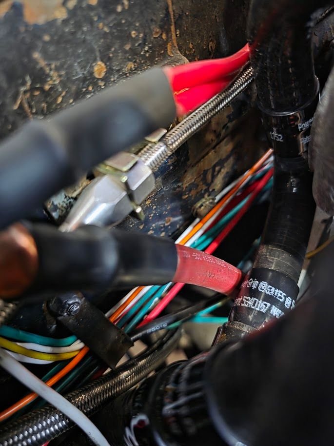 This is the other side of the engine compartment. It's tough to see but the right side of the picture is where the outer cable starts. To the left side is a spare section of outer cable to keep the inner cable from sawing any wires or hoses.