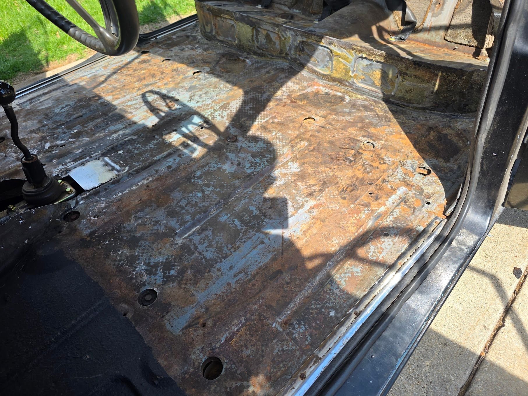 Today I was able to get two coats of rust converting paint on the floor boards. This is after coat #1.