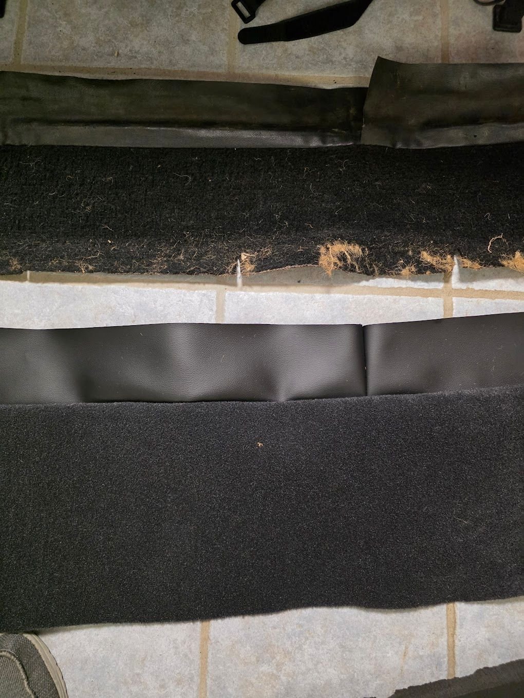 I know I started recovering the seats last week, but the proper order of operations is carpet first, then seats. So I re-focused my attention to the carpet, starting with the piece that covers the lower part of the rear seat base.