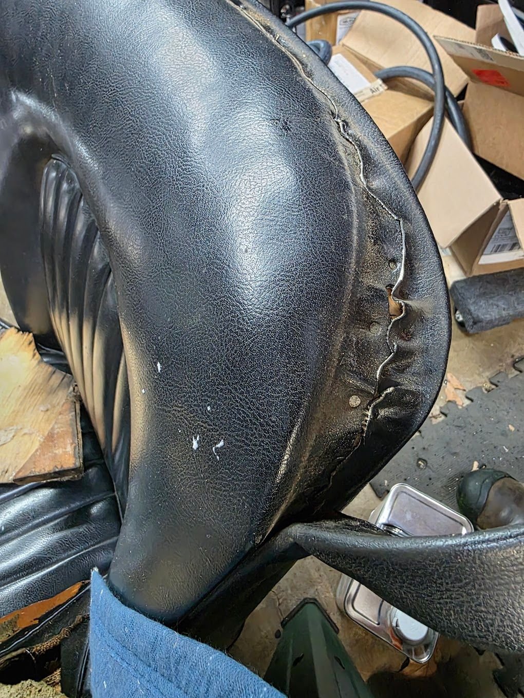 I have not been happy with how the seat backs have been turning out. I have installed and removed the back 3 times now and have been frustrated with how there are major wrinkles at the top corner of the seat backs. I went out to the garage to see how the front driver seat was originally put together.