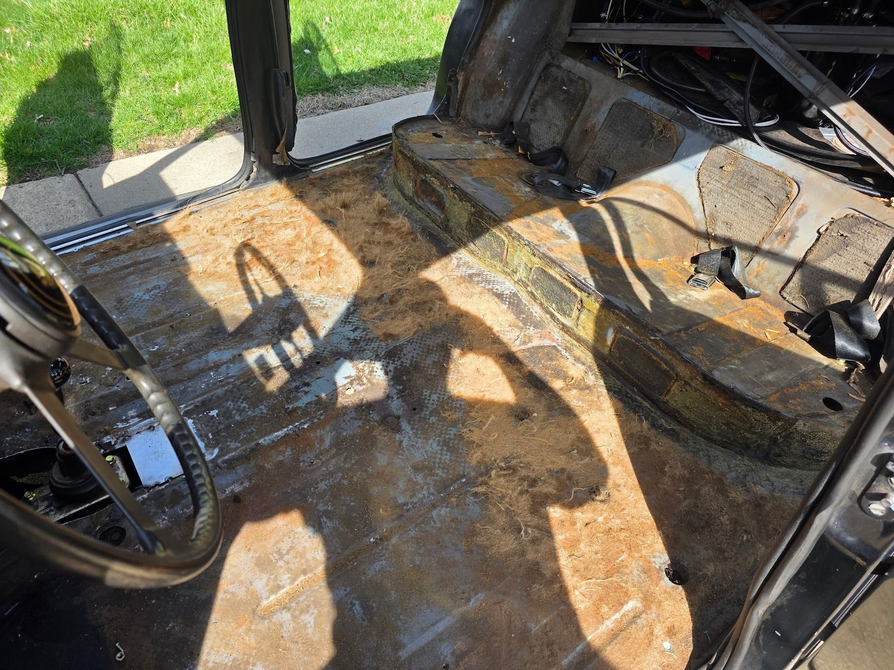 I pulled the car outside, pulled out the driver's seat, and removed the rest of the carpet.
