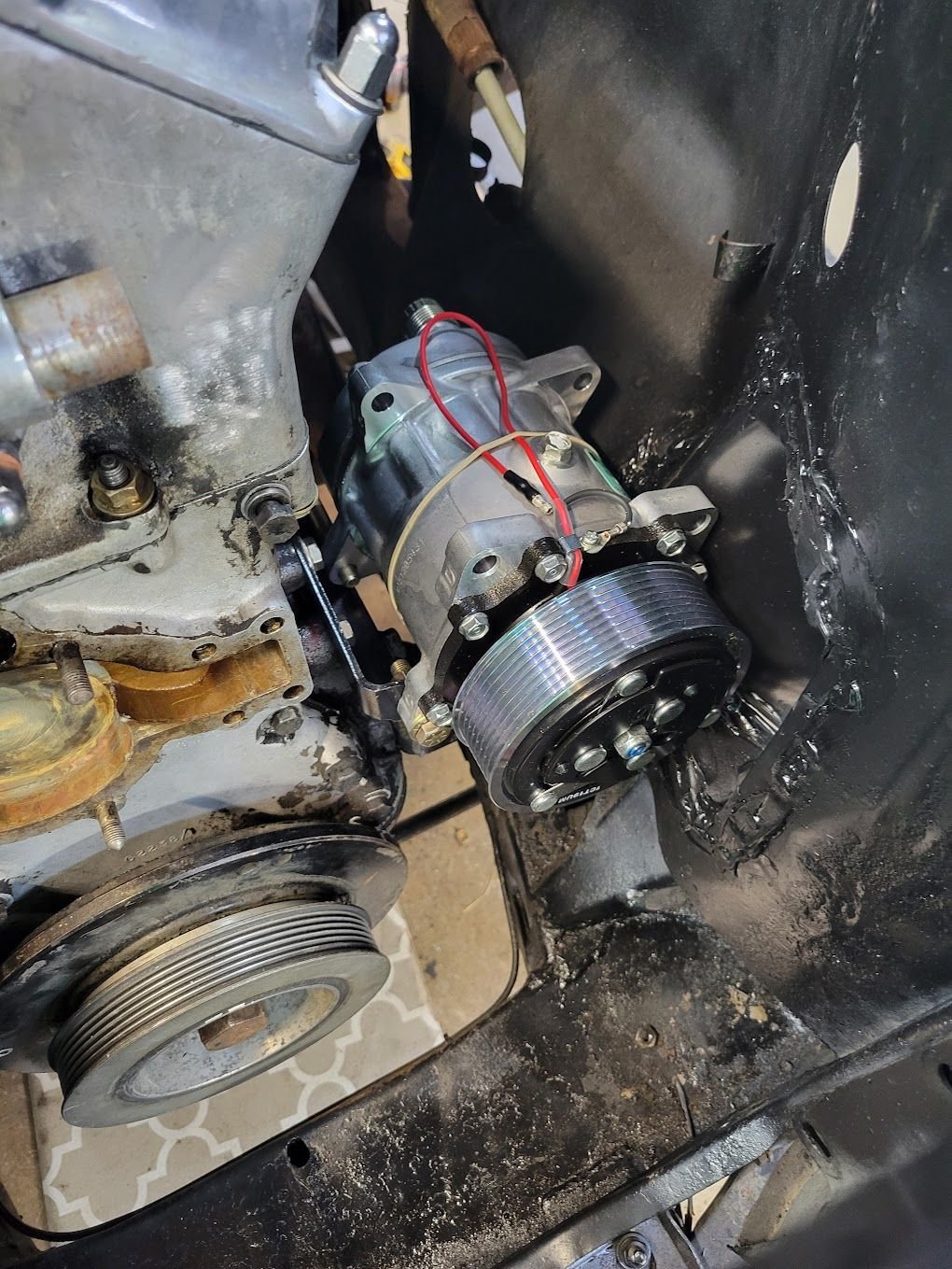 A couple of updates tonight. I am moving forward with my plan for the serpentine belt drive for the accessories and did the final install of the 2013-2015 Jaguar XJ crankshaft pulley. The center hole had to be opened up to 2-3/8" and two more holes needed to be drilled to match the 4 holes on the front of the crankshaft. Some clipped washers and zinc-plated socket head screws will hold it in place.