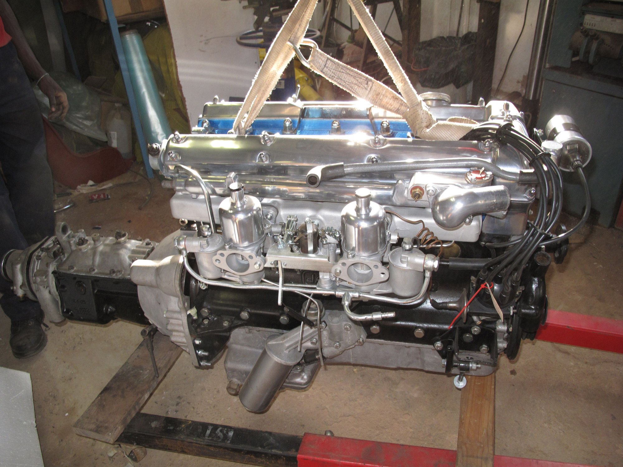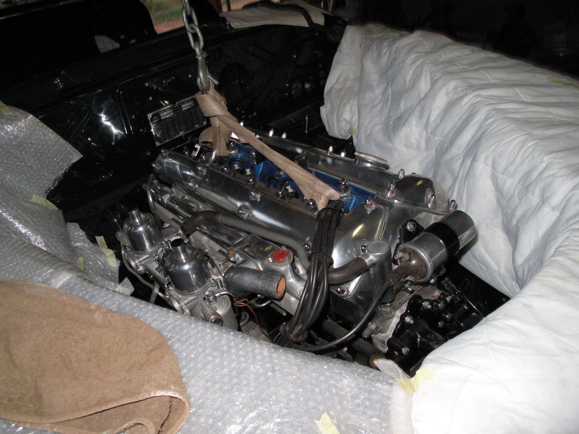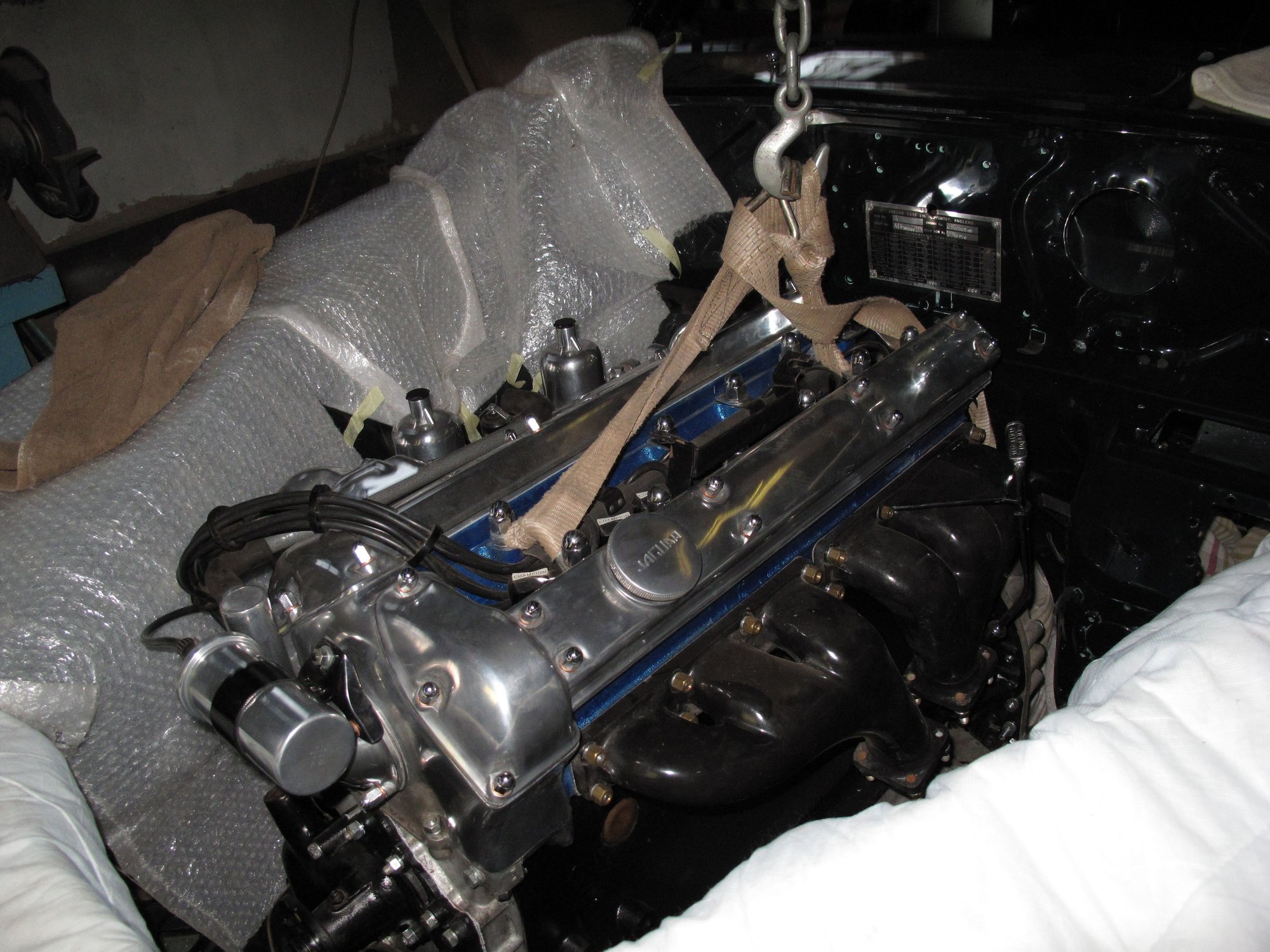 BTW ~ The car was standing raised on jack-stands & not it's wheels. Extra space under the vehicle is a big help coming in from the top. We had a full hoist available but no engine crane that would work with it.
