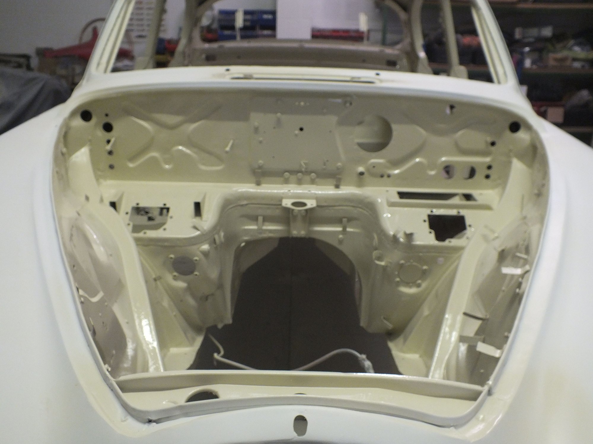 The result of seeing a dark top coat over black schutz has probably fooled many into refinishing the under bonnet in black.