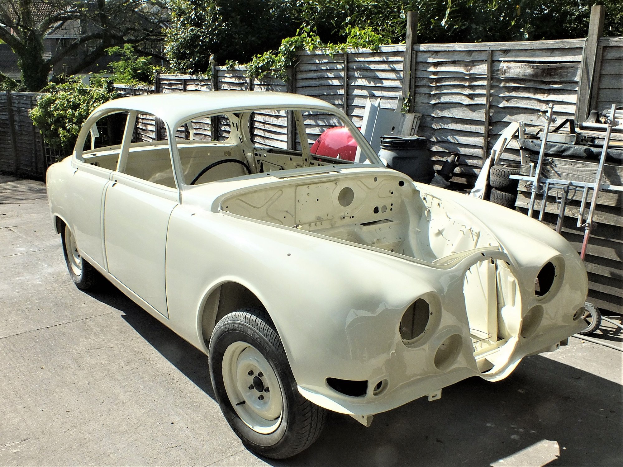 See under-body & wheel arches being painted car colour after sealing compound. Today we would use anti corrosive stone chip/Shutz etc. after dipping or spraying. As I had no dipping capability we used BASF/Glasurit Porsche self healing primer & spayed every nook & cranny as first coat for everything top & bottom. All double skinning of the monocoque, inside doors etc.