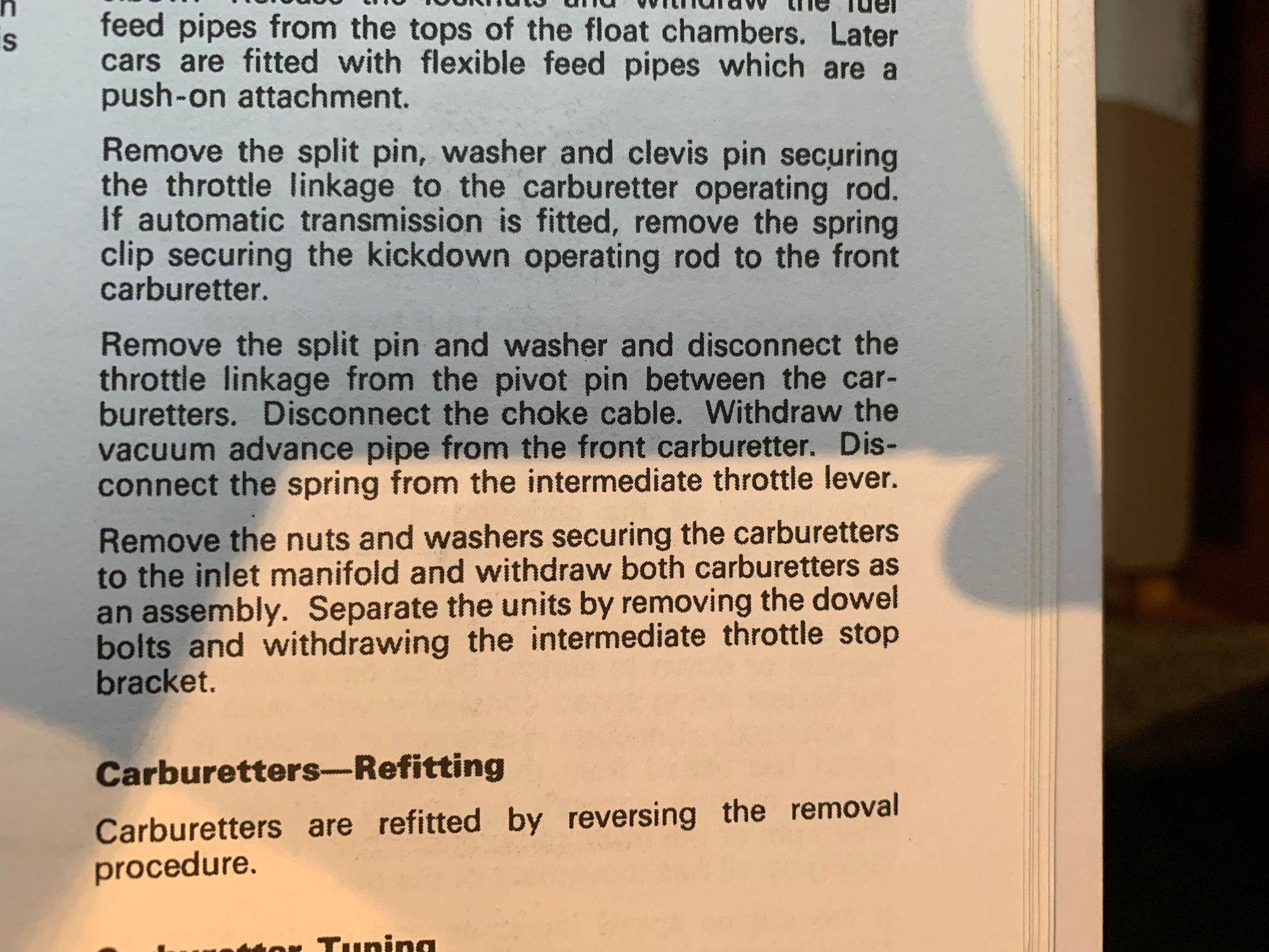 Following on from Cass3958, the 2.4 and 3 series had the automatic linkage fixed to the rear carburettor but the addendum in the manual refers to releasing the split pin and clevis pin from the front carburettor.